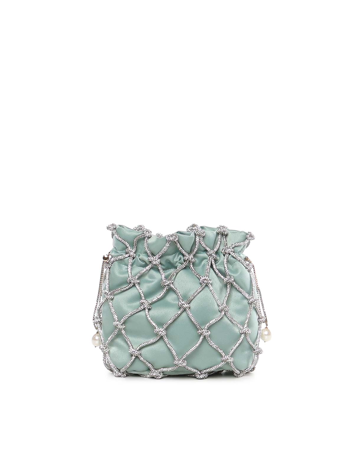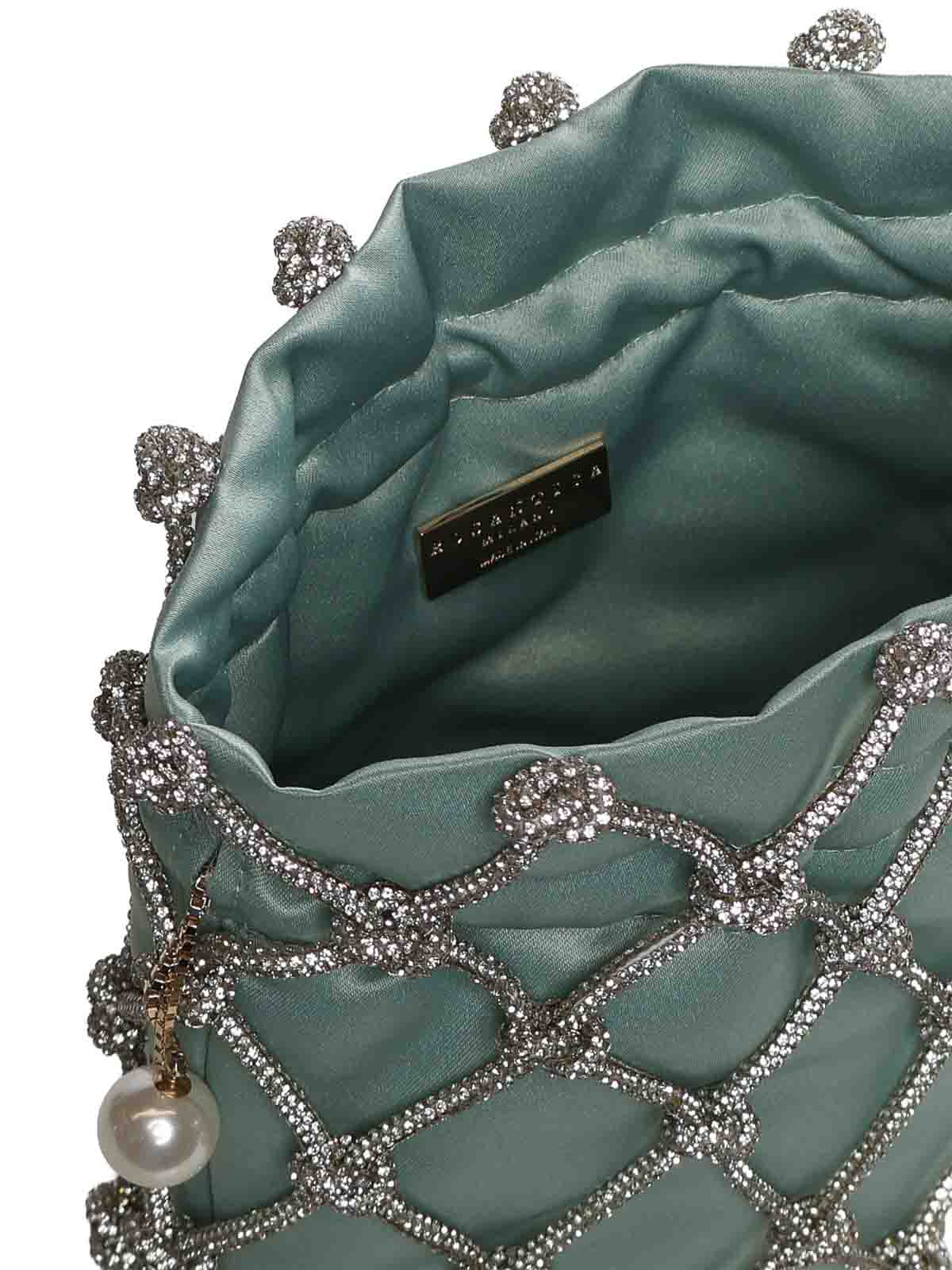真鍮製&ホットフィックス、真鍮チェーンショルダーストラップ、サテン裏地、寸法:18 x 18 x 8 cm、イタリア製、色:クリスタルミント