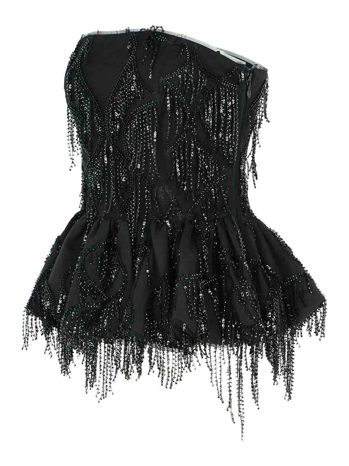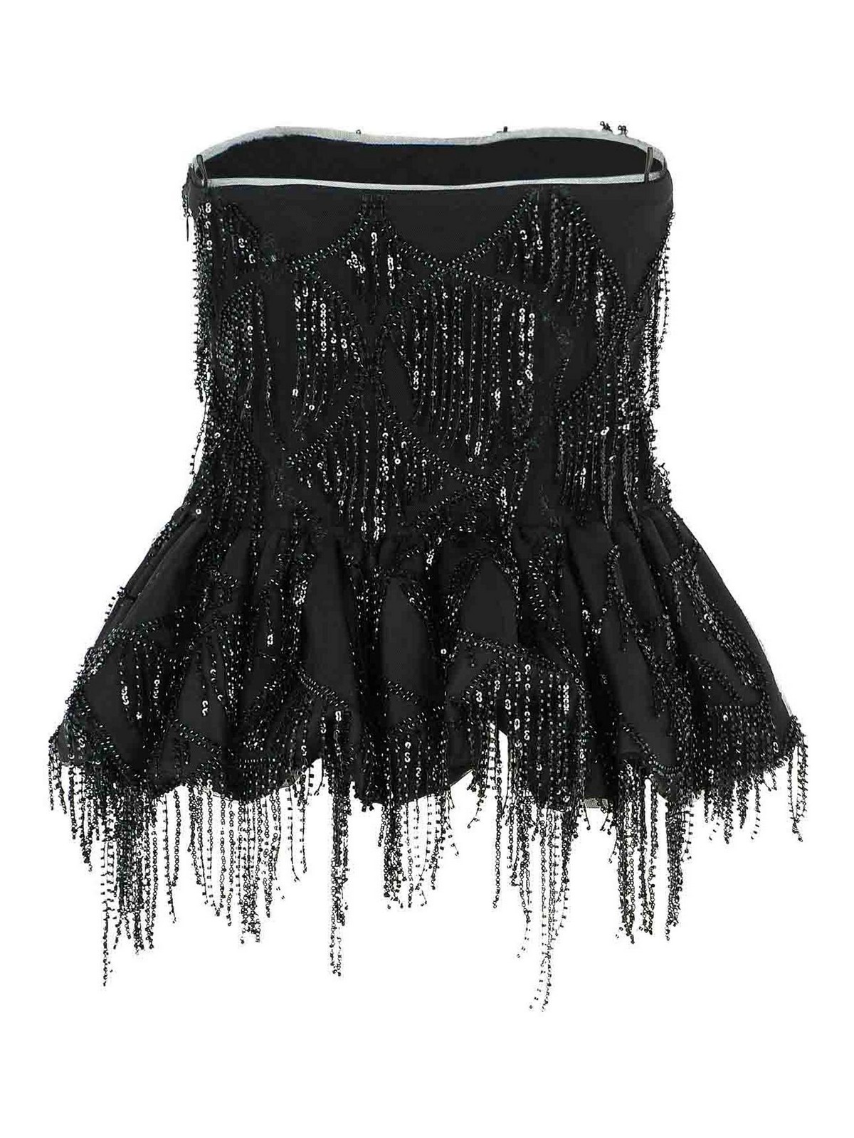 トーンのストラップレスサイドフックとジッパーで装飾されたスパンコールとビーズ