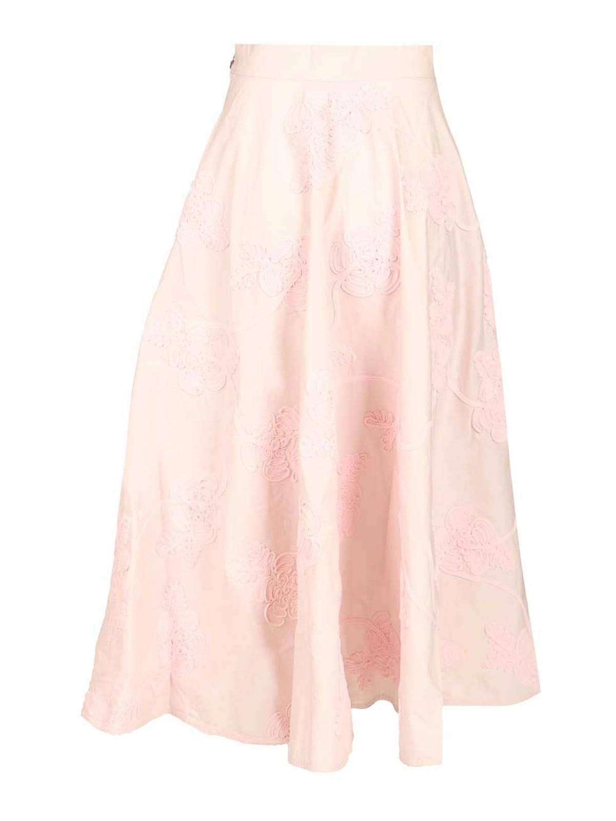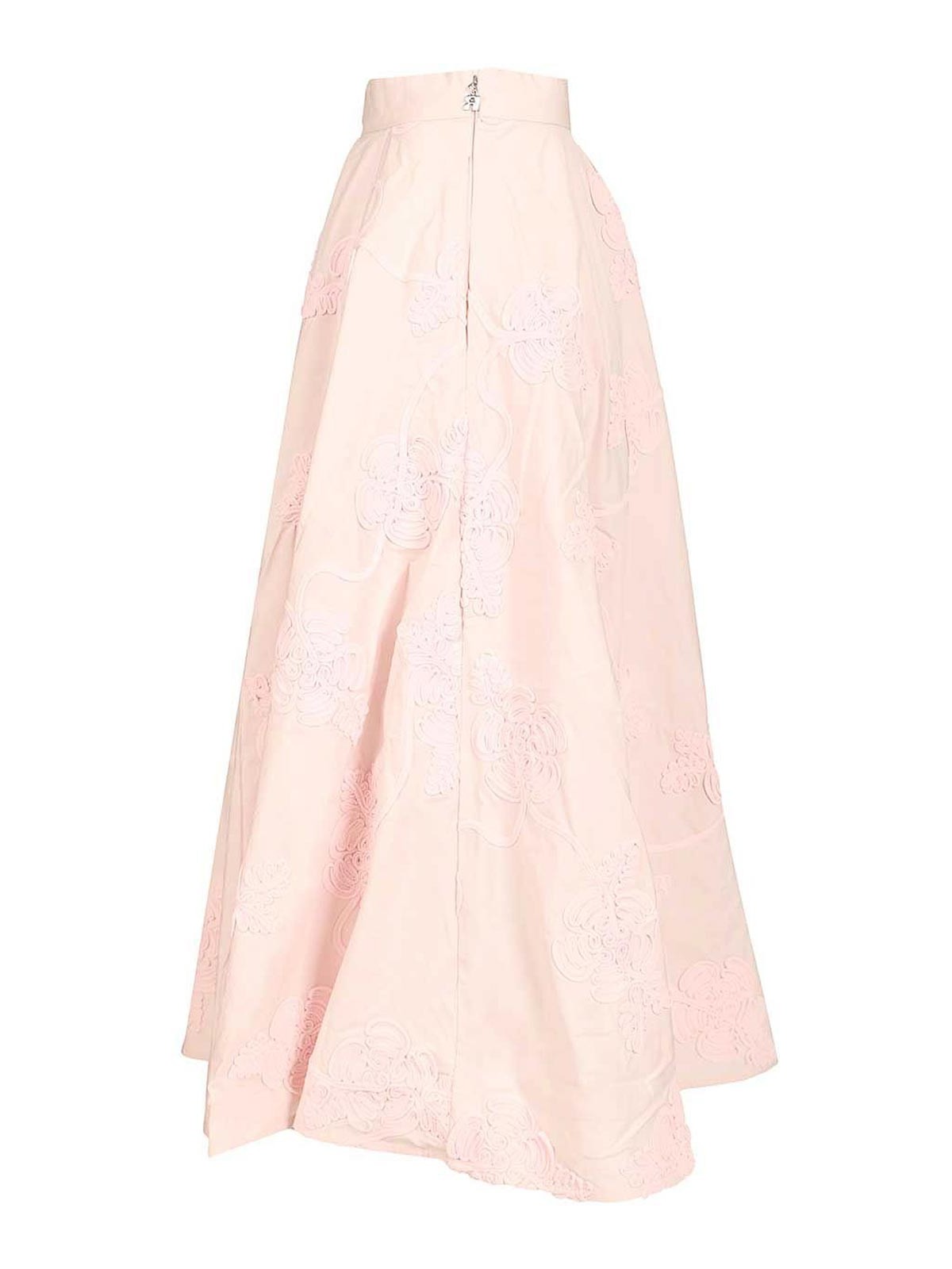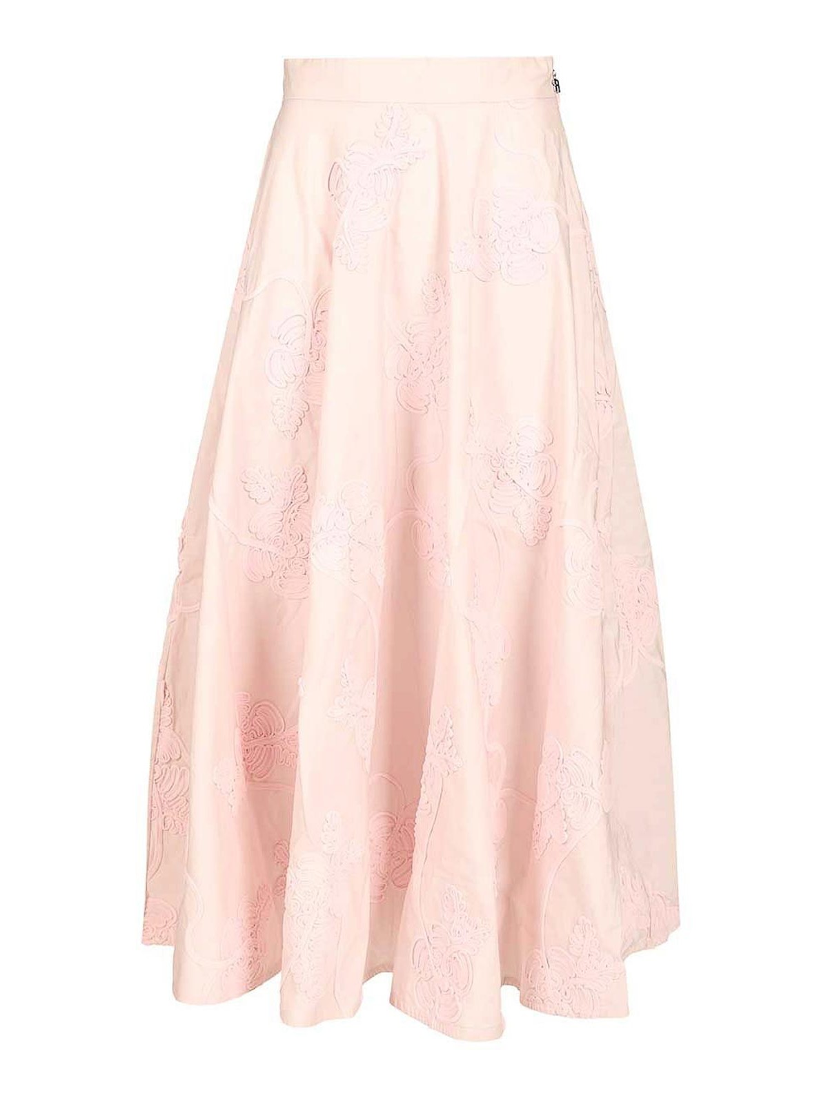 フラワーマキシライトピンクのロングスカートは、全体に花柄の刺繍が施されています。スカートはしっかりとしたウエストバンドと裾まで伸びるボリュームのあるシルエットで、フラワーライトピンクのオーバーサイズシャツと合わせてコーディネートできます。