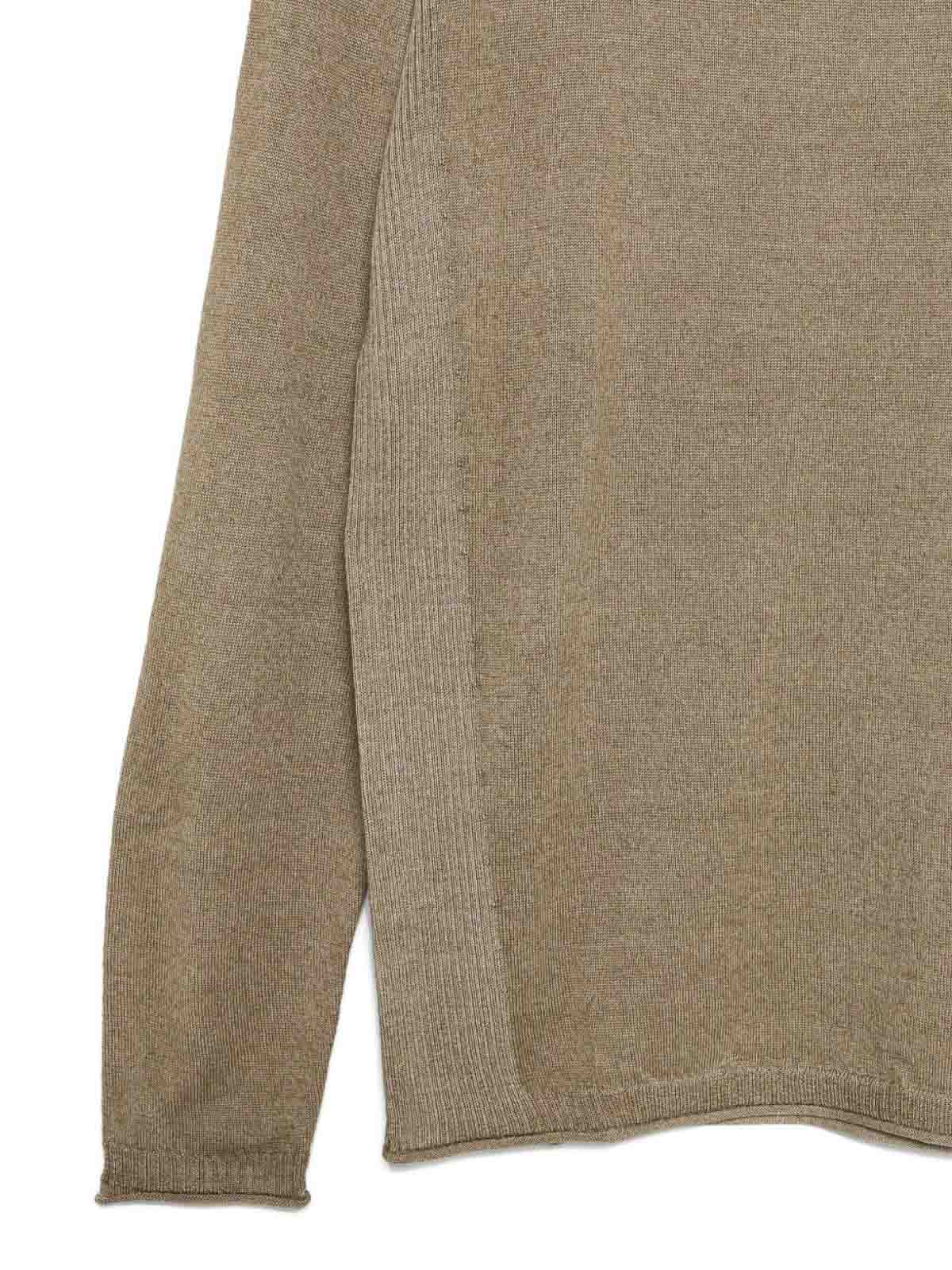 ライトブラウンリブニットクルーネックロングスリーブストレートヘムロゴパッチ
