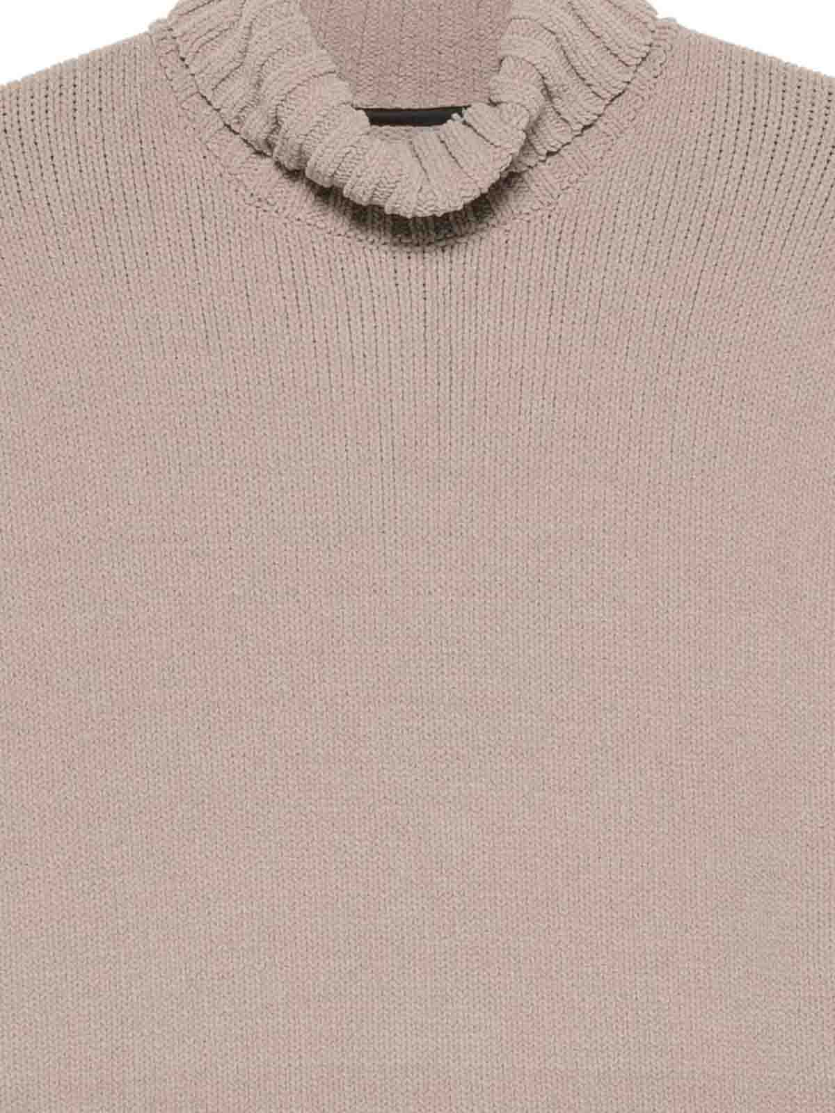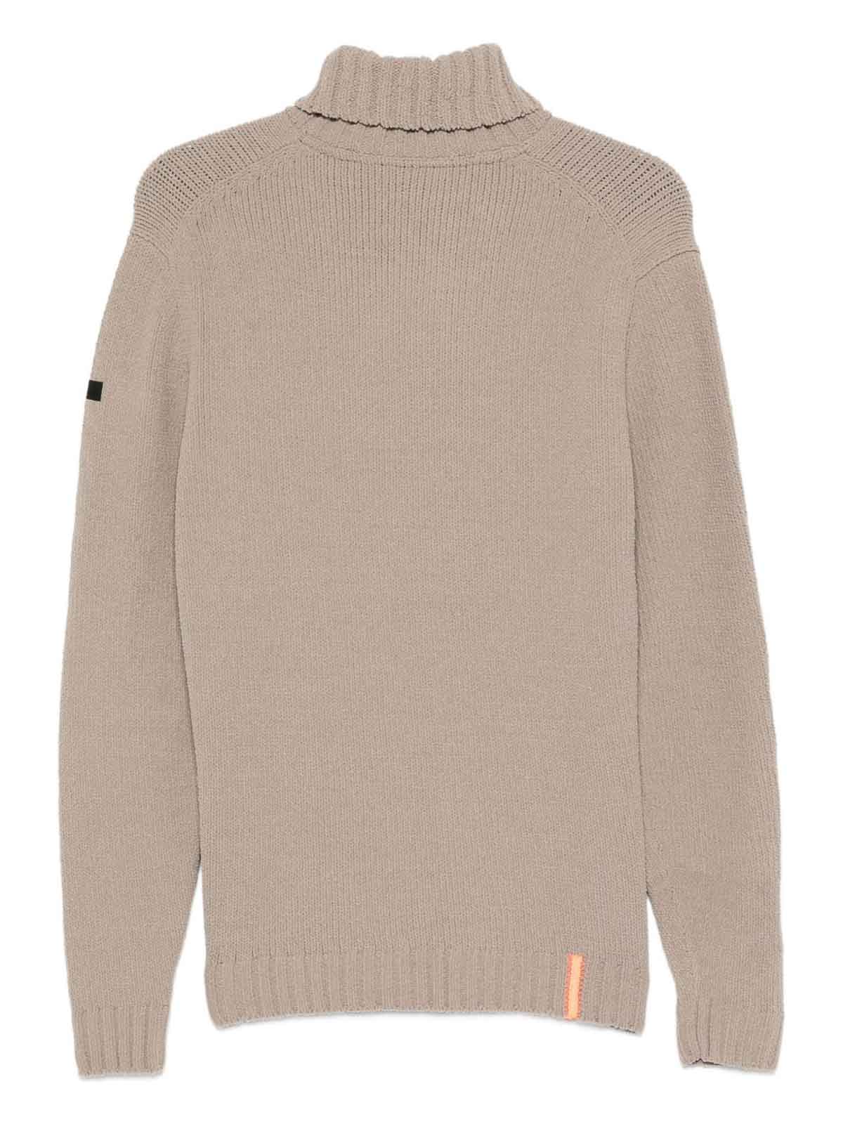 リブ編みのトリムとロングスリーブが特徴のrrdのベージュハイネックセーターは、カジュアルにも洗練されたルックにも重ね着にも単独で着るのにも最適な、着心地が良く用途の広い一着です