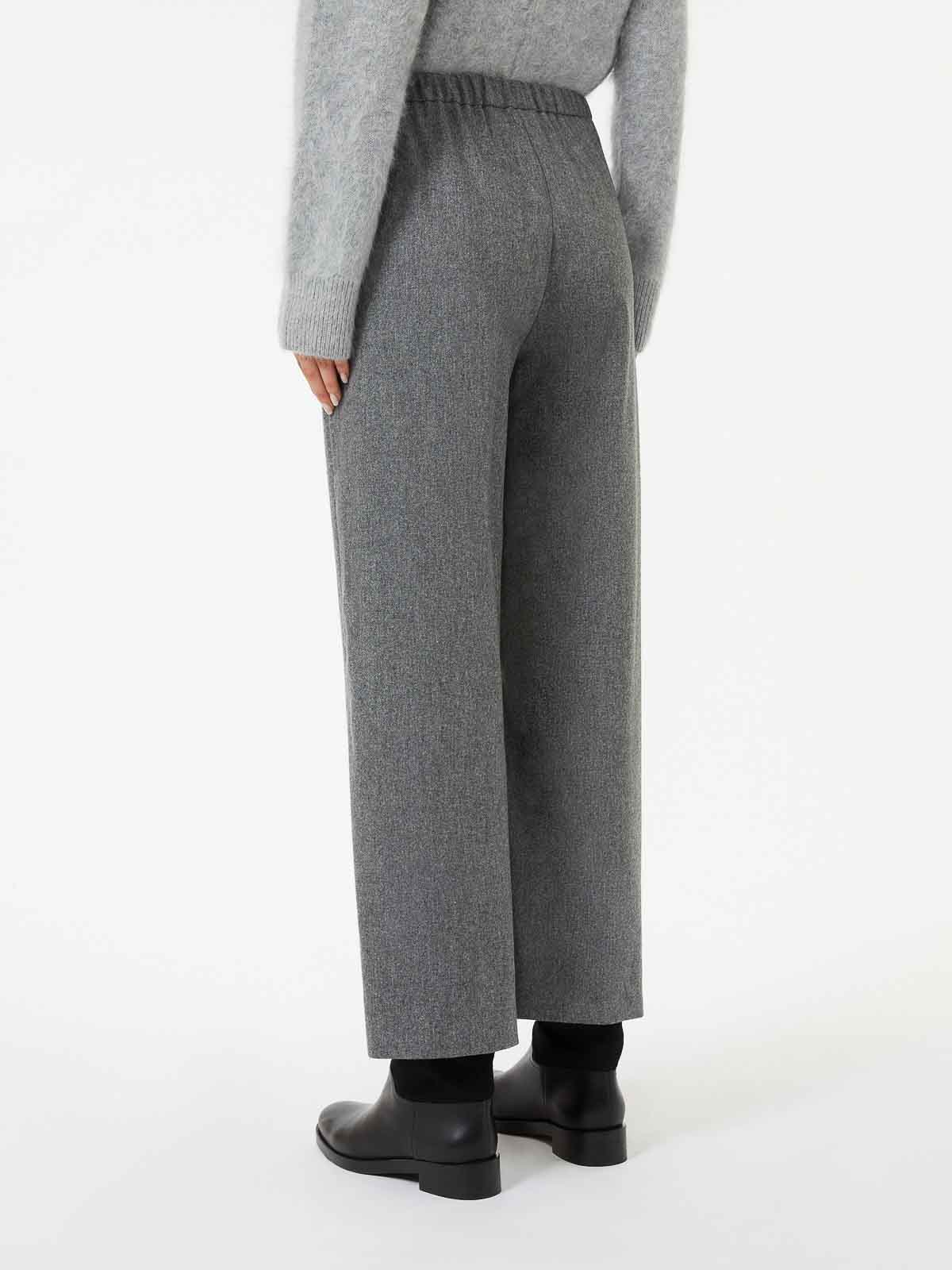 ライトグレーのジョギングパンツストレッチウールフランネルパンツ伸縮性のあるドローストリングウエスト隠しジッパーとフッククロージャーのサイドスラントポケット