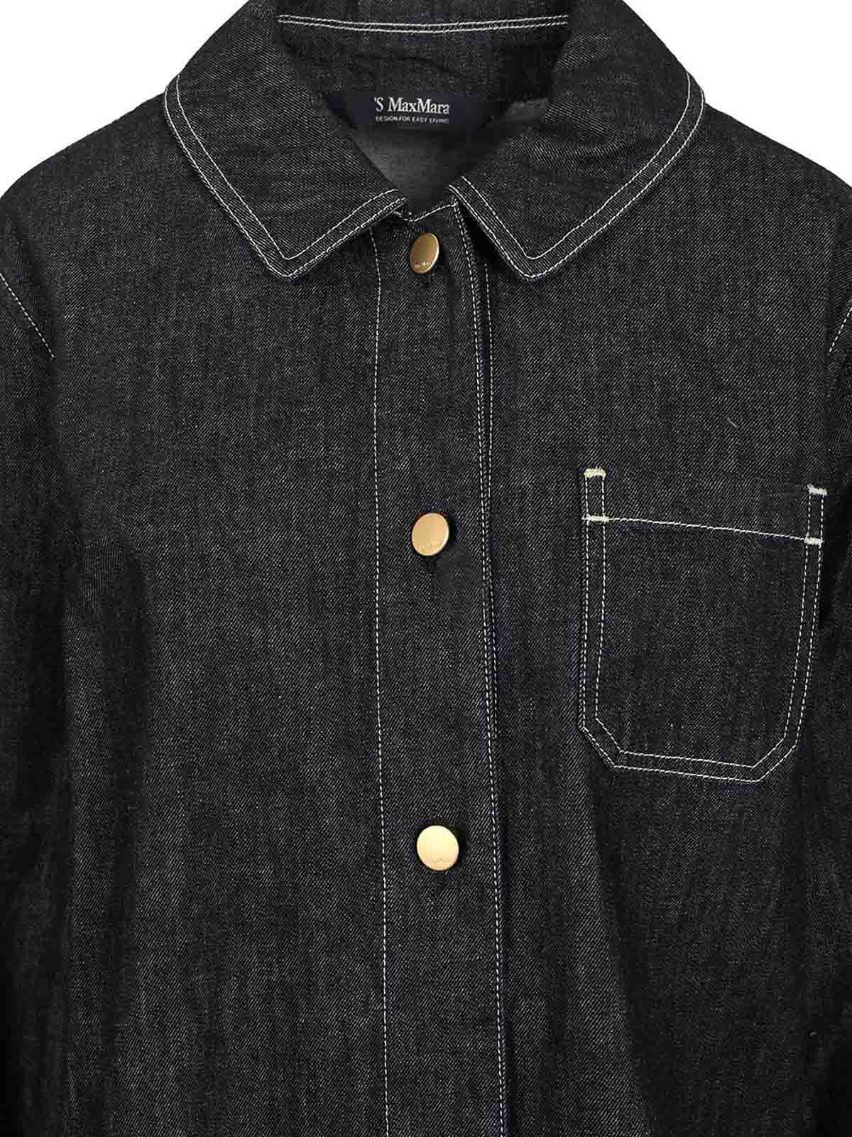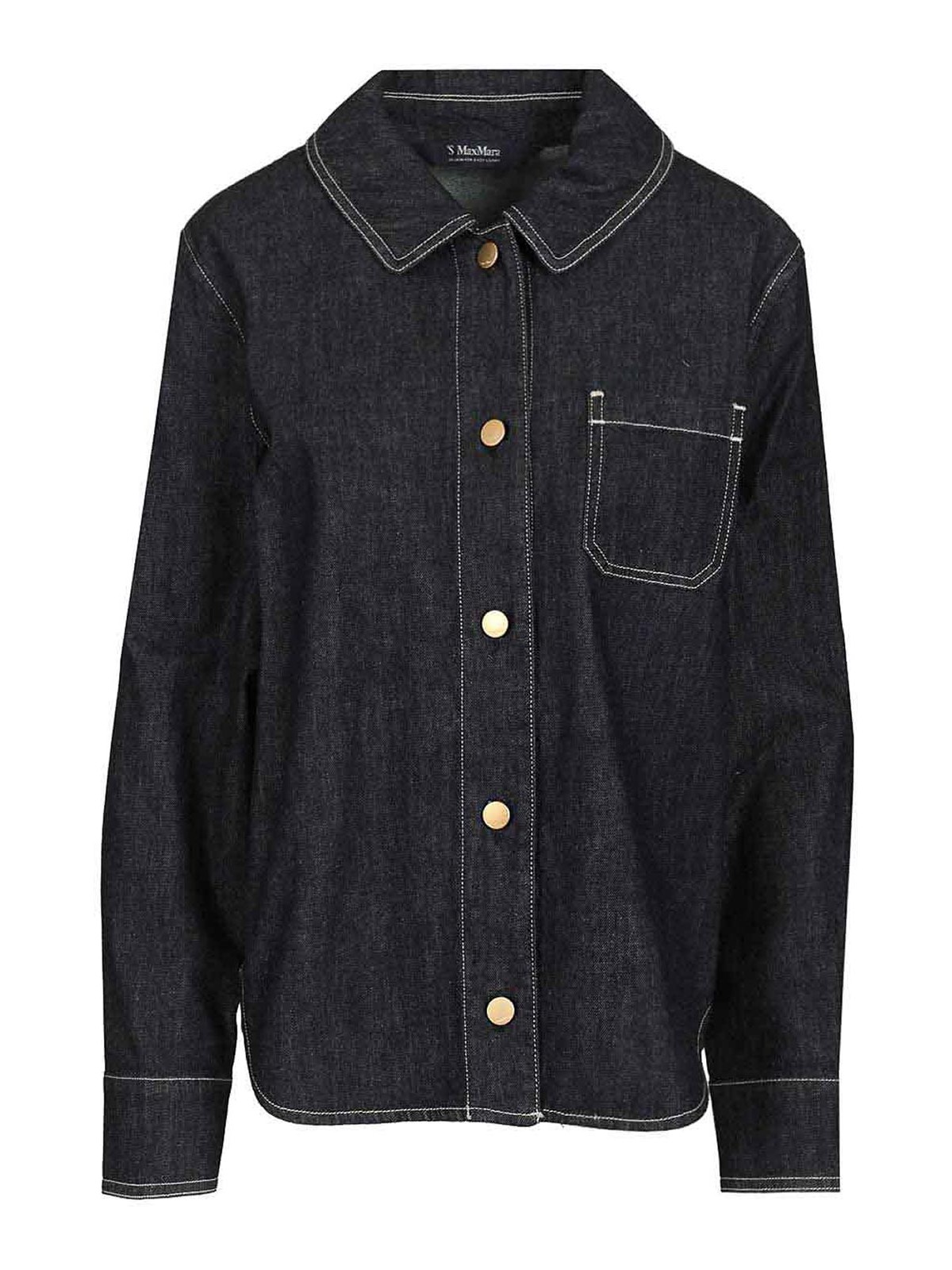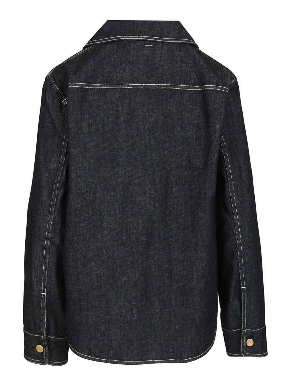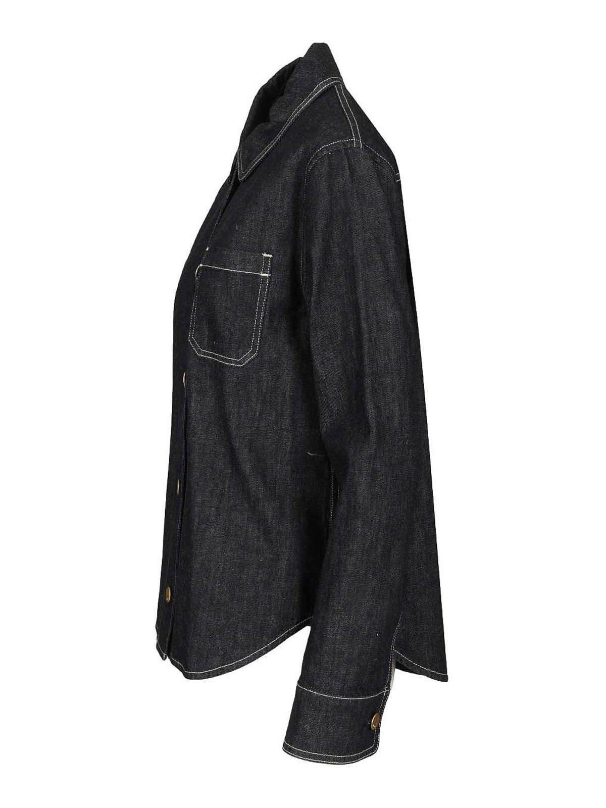 コントラストステッチのパッチポケットとスナップボタン付きデニムシャツ