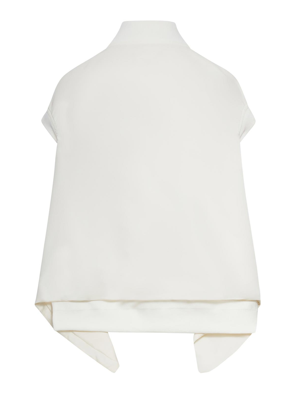 ハイネック、フロント2ウェイジッパー、装飾ボタン付きドロップショルダー、アシンメトリーヘム、斜めフロントポケット2つ、ルーズフィット、色:オフホワイト