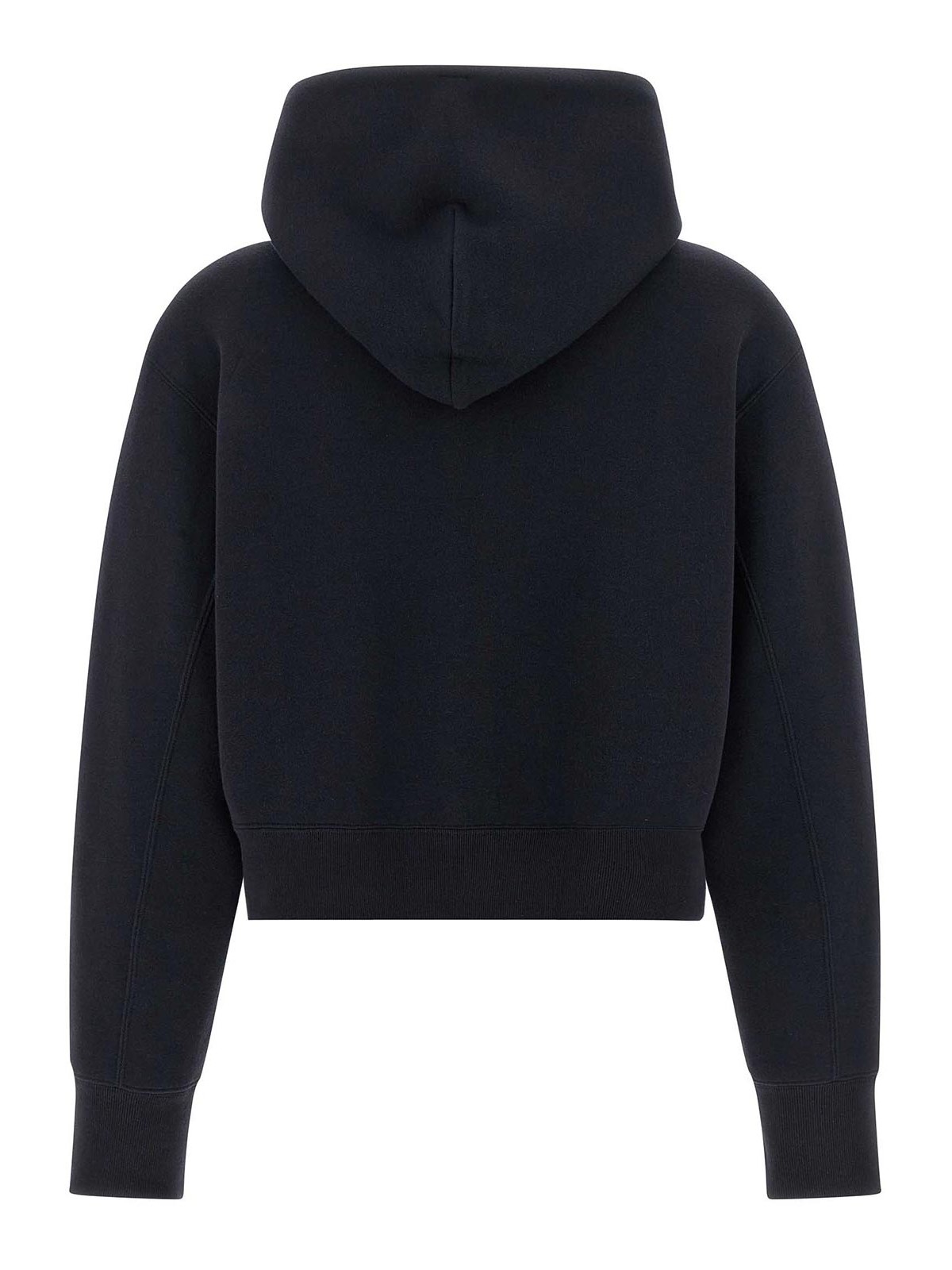 クロップスタイルのスポンジコットン混紡パーカー、取り外し可能なトーン・オン・トーンのメタルロゴピン、袖口とドロップショルダー付きの長袖、スナップボタン付きのサイドスリット。