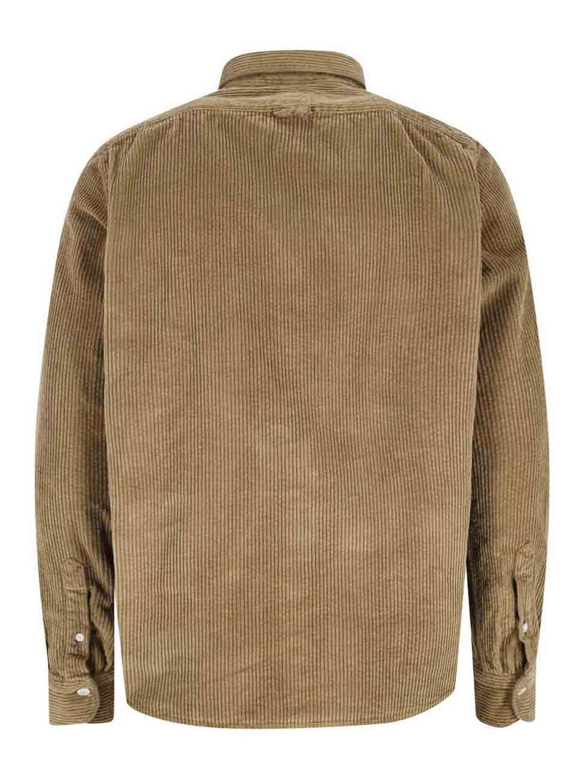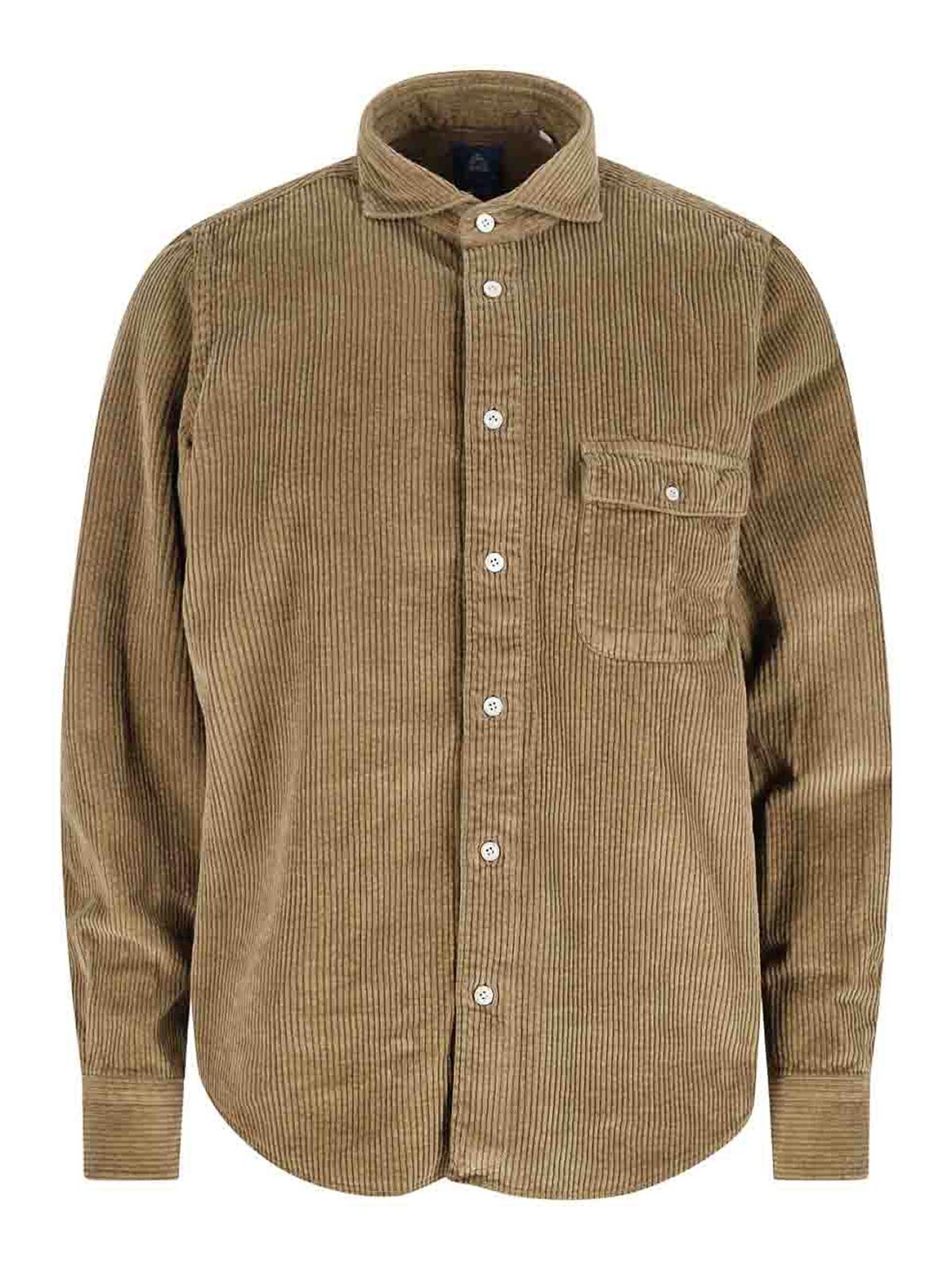 Finamore 1925 サリナシャツ、ブラウンベルベット、リブ模様、クラシックな襟、ボタン留め、フロントボタンポケット1つ、ボタン付きカフス、カーブヘム。