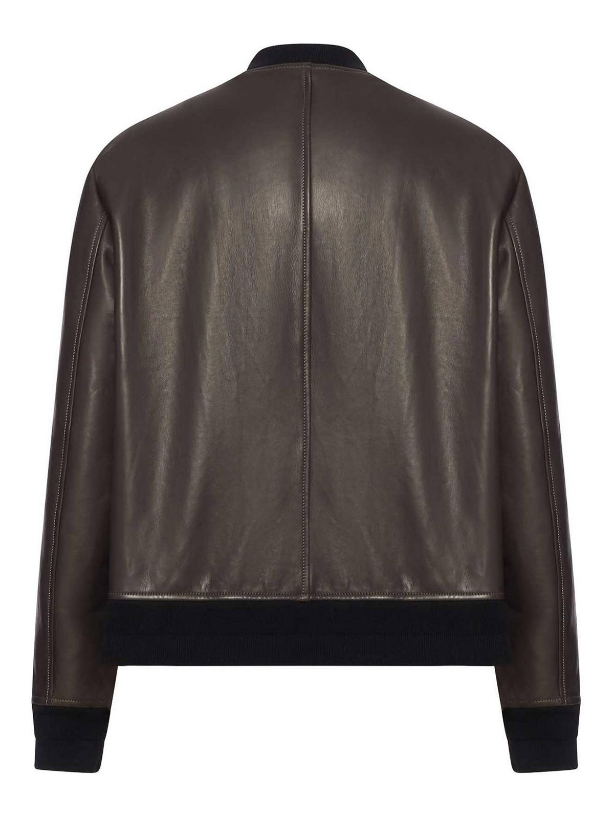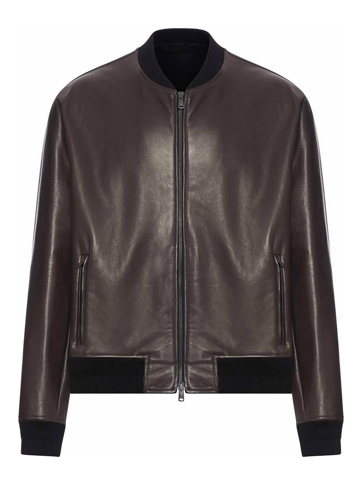 リブ編みマンダリンカラー、2ウェイフロントジッパー、ロングスリーブ、伸縮性のあるリブ付きカフス、フロントジッパー付きウェルトポケット2つ、リブ付きストレートヘム、裏地付き、100% レザー、色:ダークブラウン