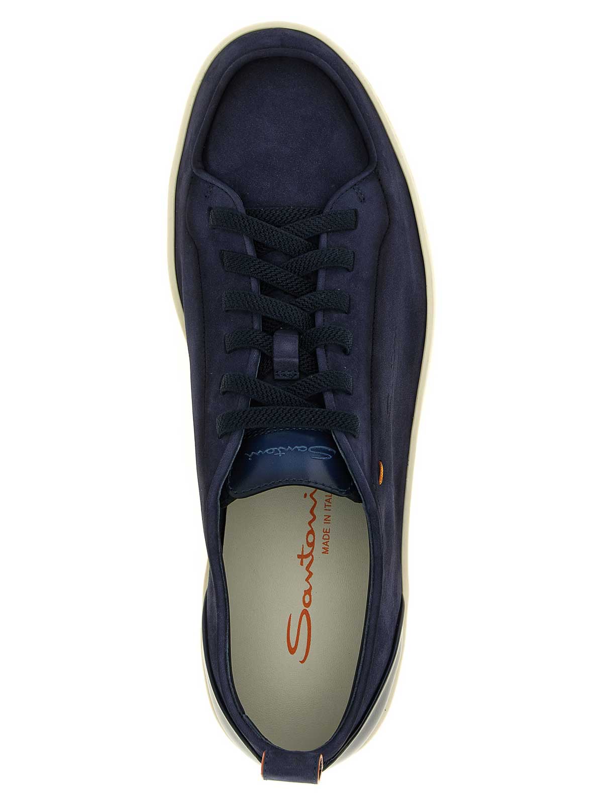 montecarloのデラヴ・エフェクト・ナッパレザースニーカー。トーン・オン・トーンのスムースレザーのリンケッタ、レース、ラバーソールにヒールとロゴパッチをあしらいました。
