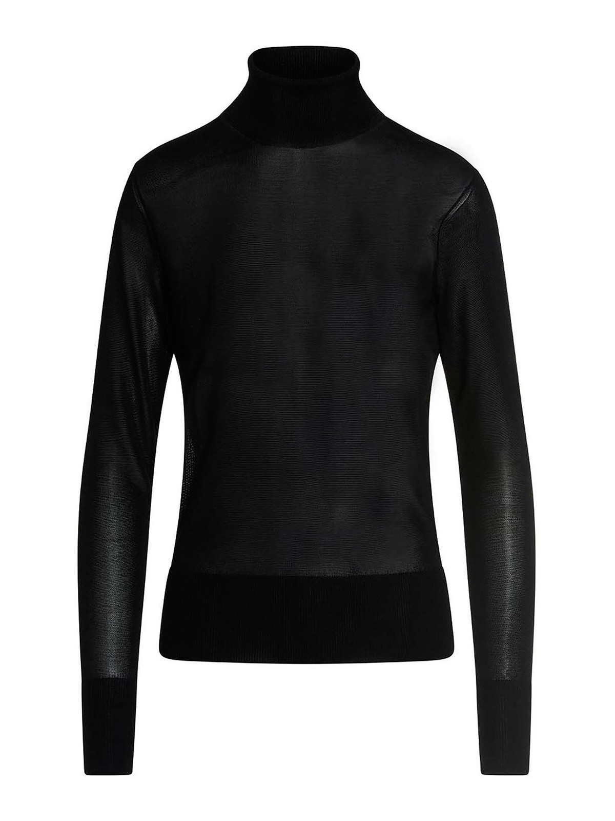ロングシースリーブのハイネックビスコースセーター