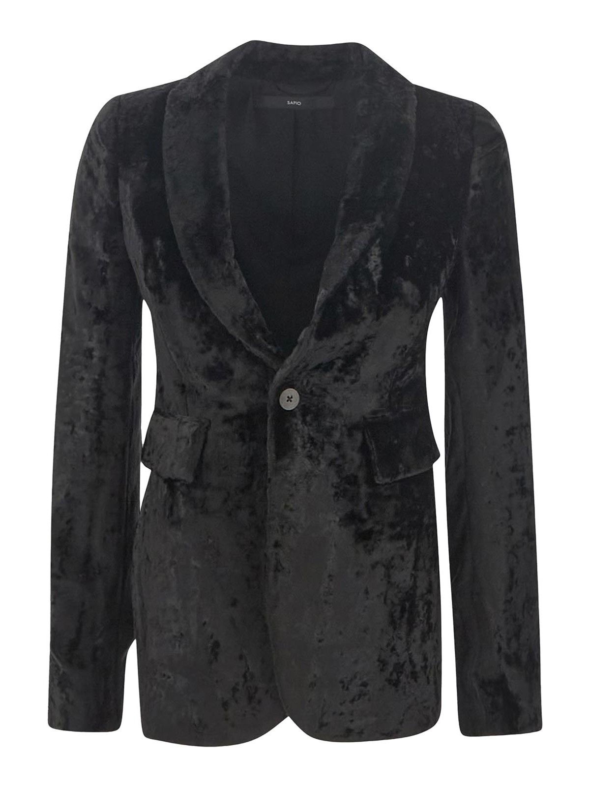 ラペルカラーとフラップ付きポケット付きブラックサピオジャケット
