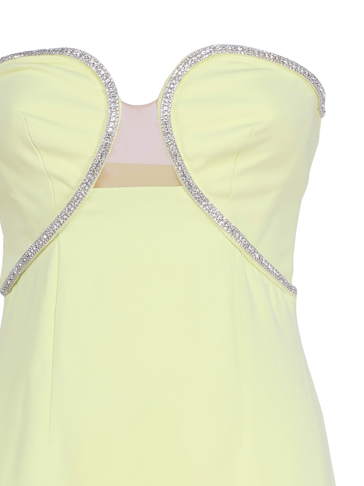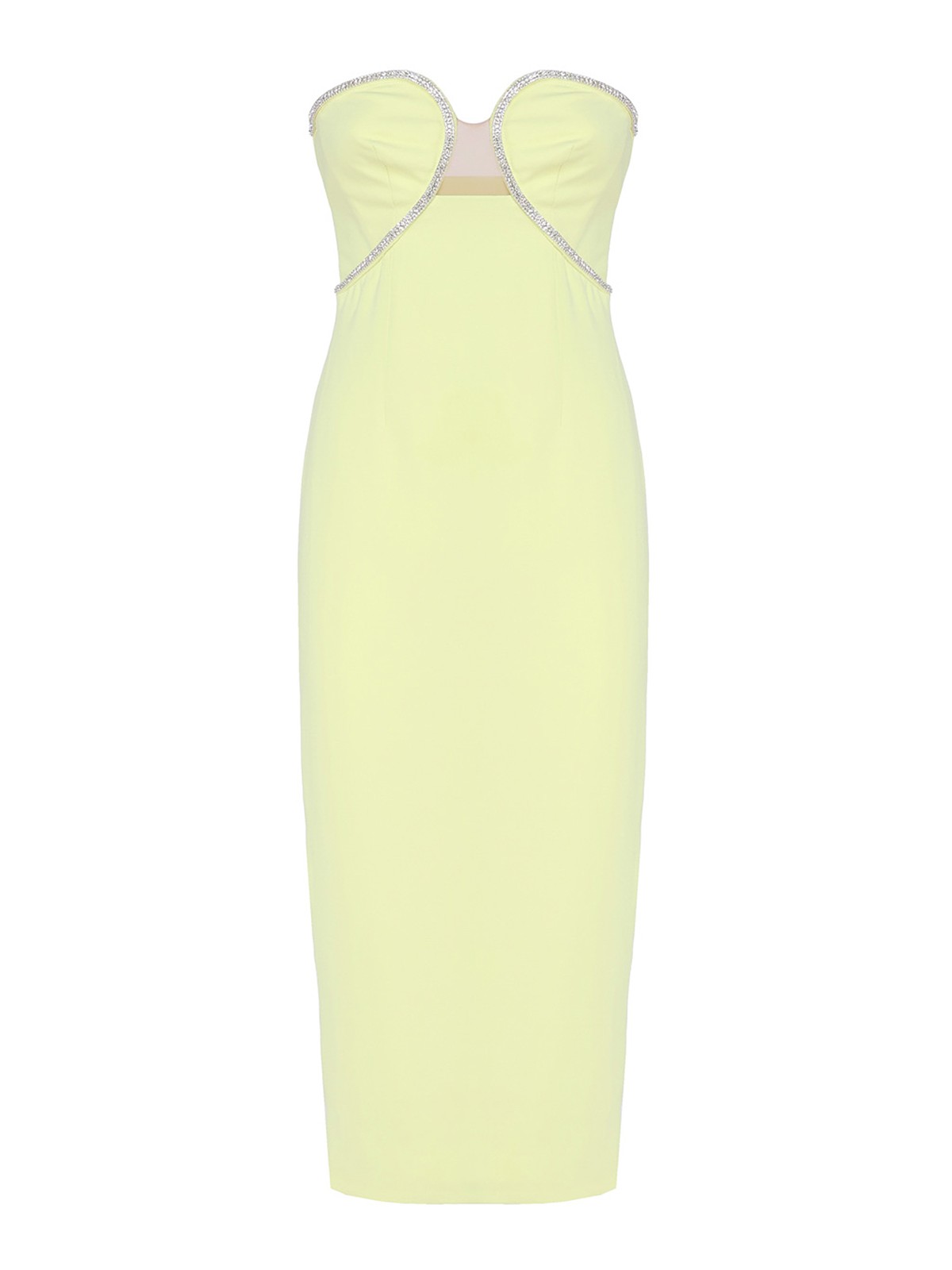 クリスタルの装飾をあしらったクレープのバンドーミディドレス