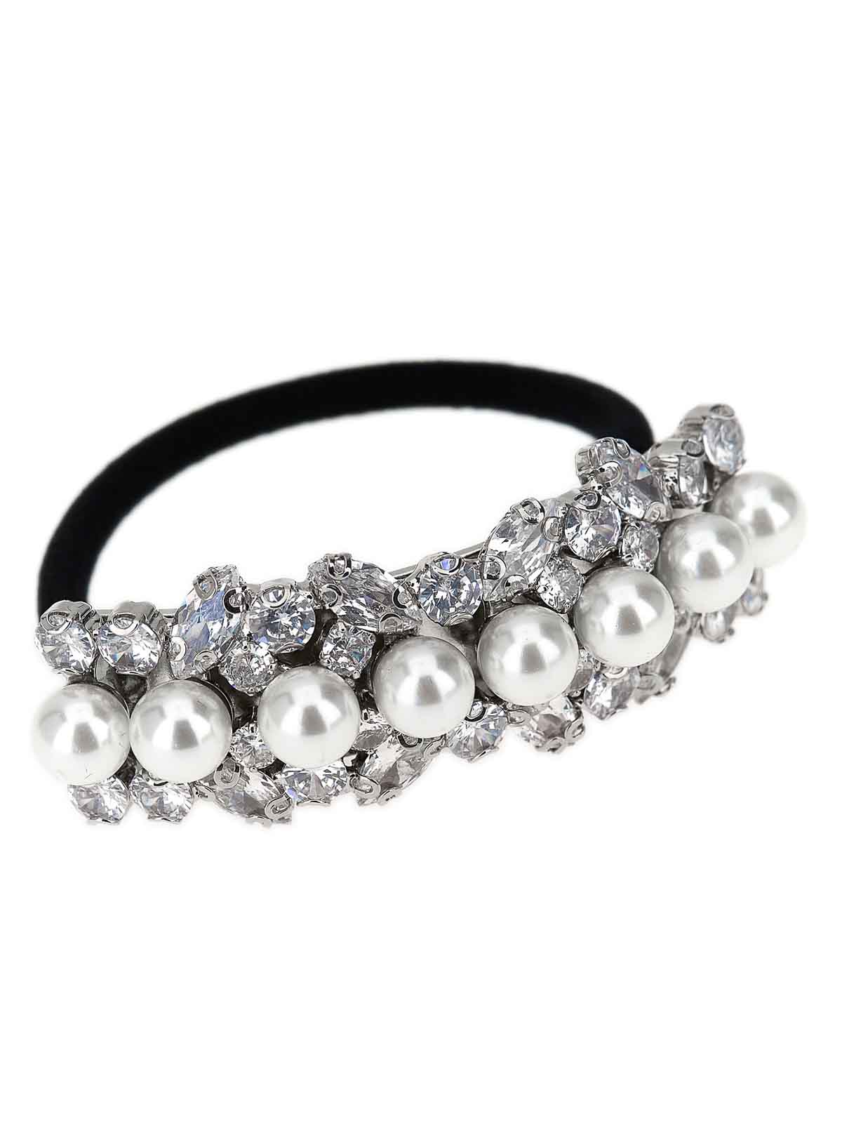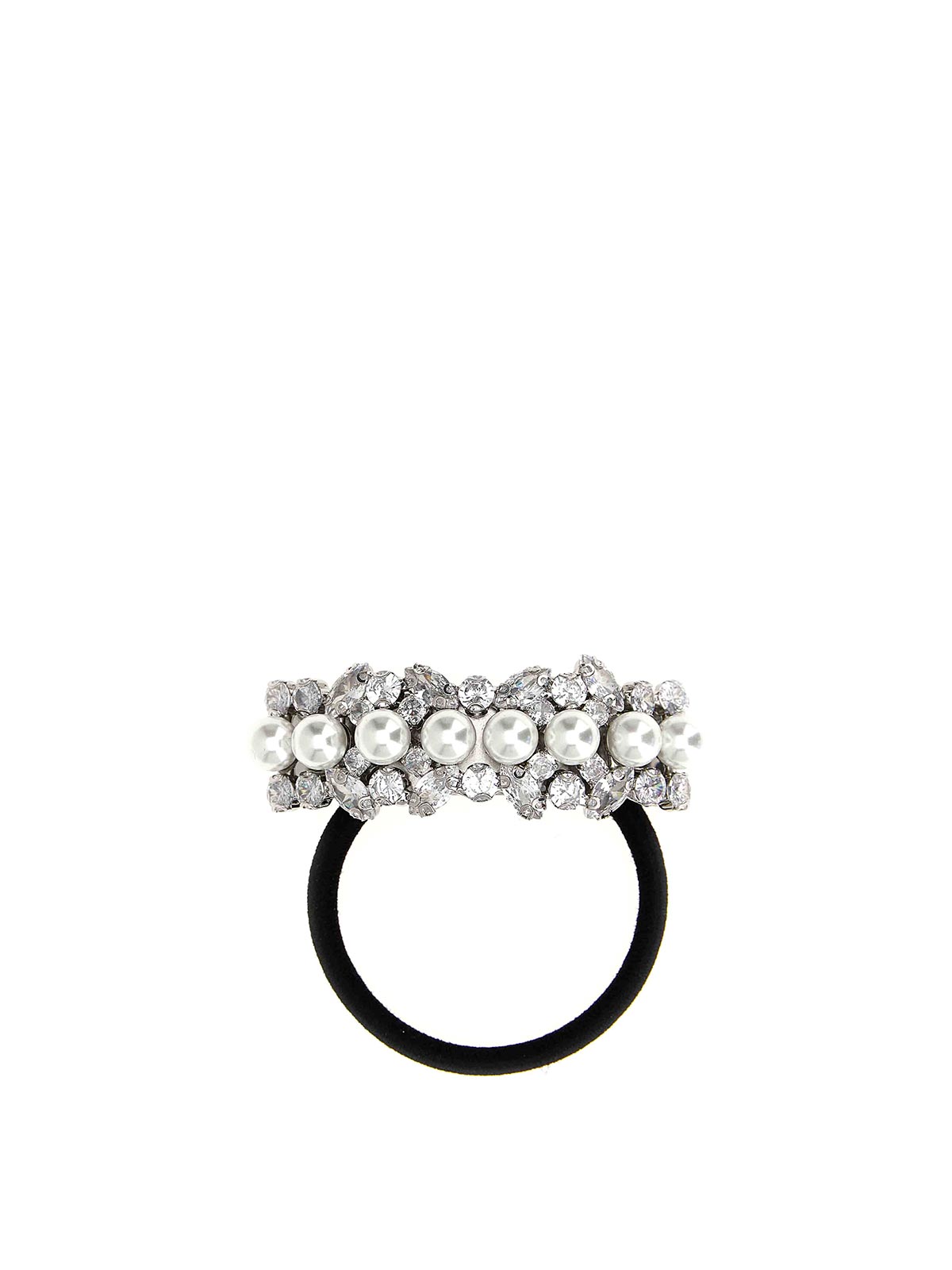 マルチクリスタルのヘアゴム-シルバーブラスのトップディテールにクリスタルとフェイクビーズをあしらいました。