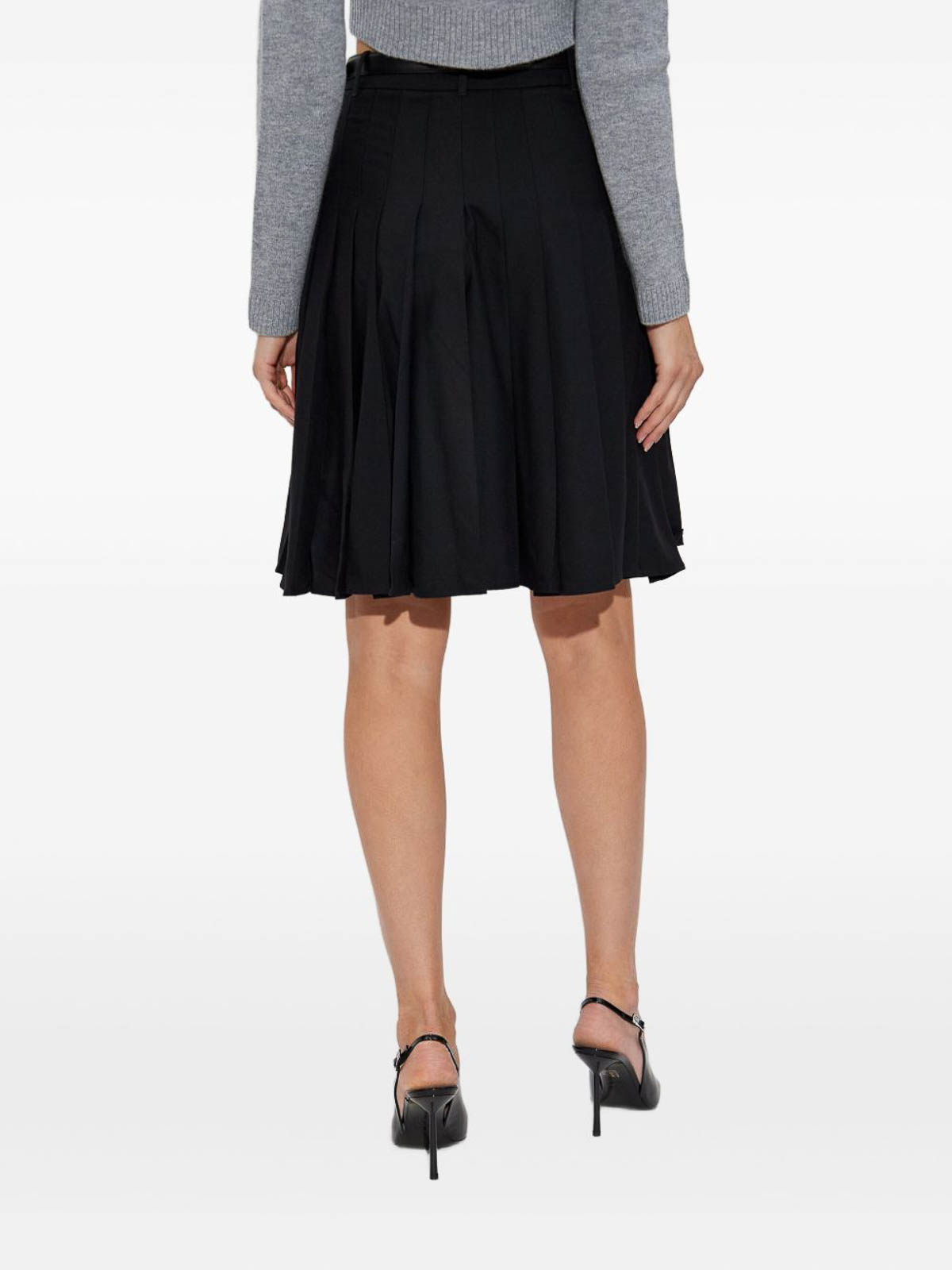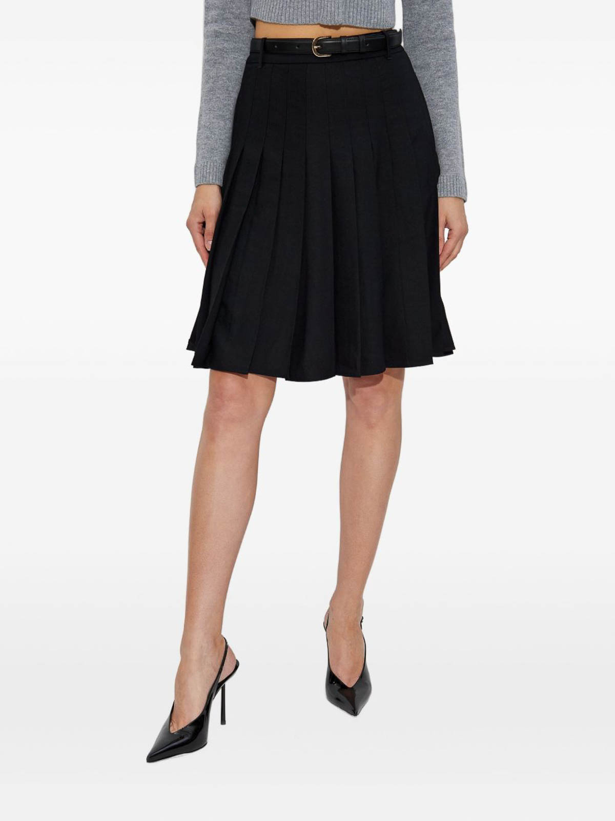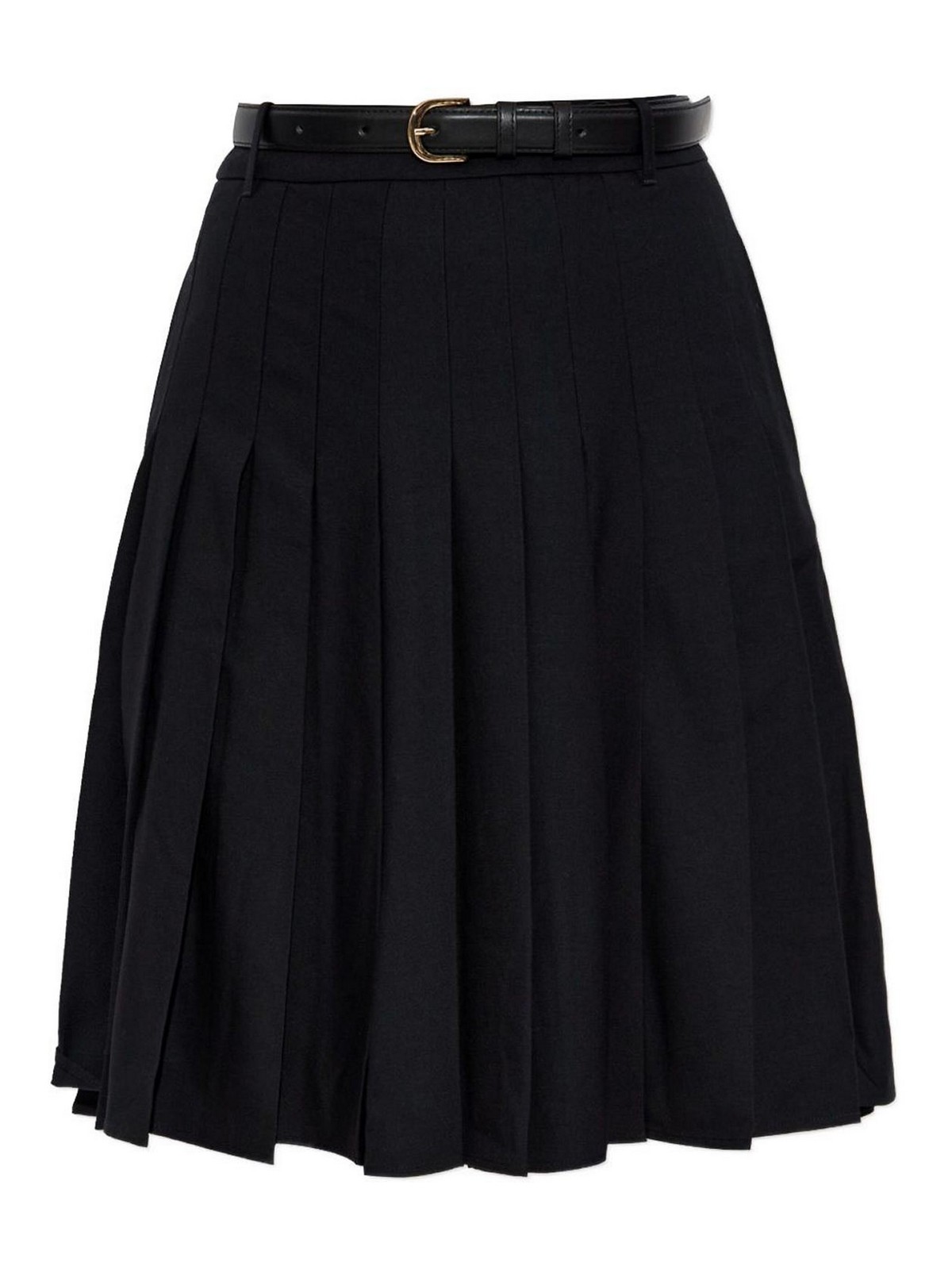 プリーツミディスカートカラー:ブラックプリーツデザインベルトスタイルゴールドトーンバックルトラピーズデザイン