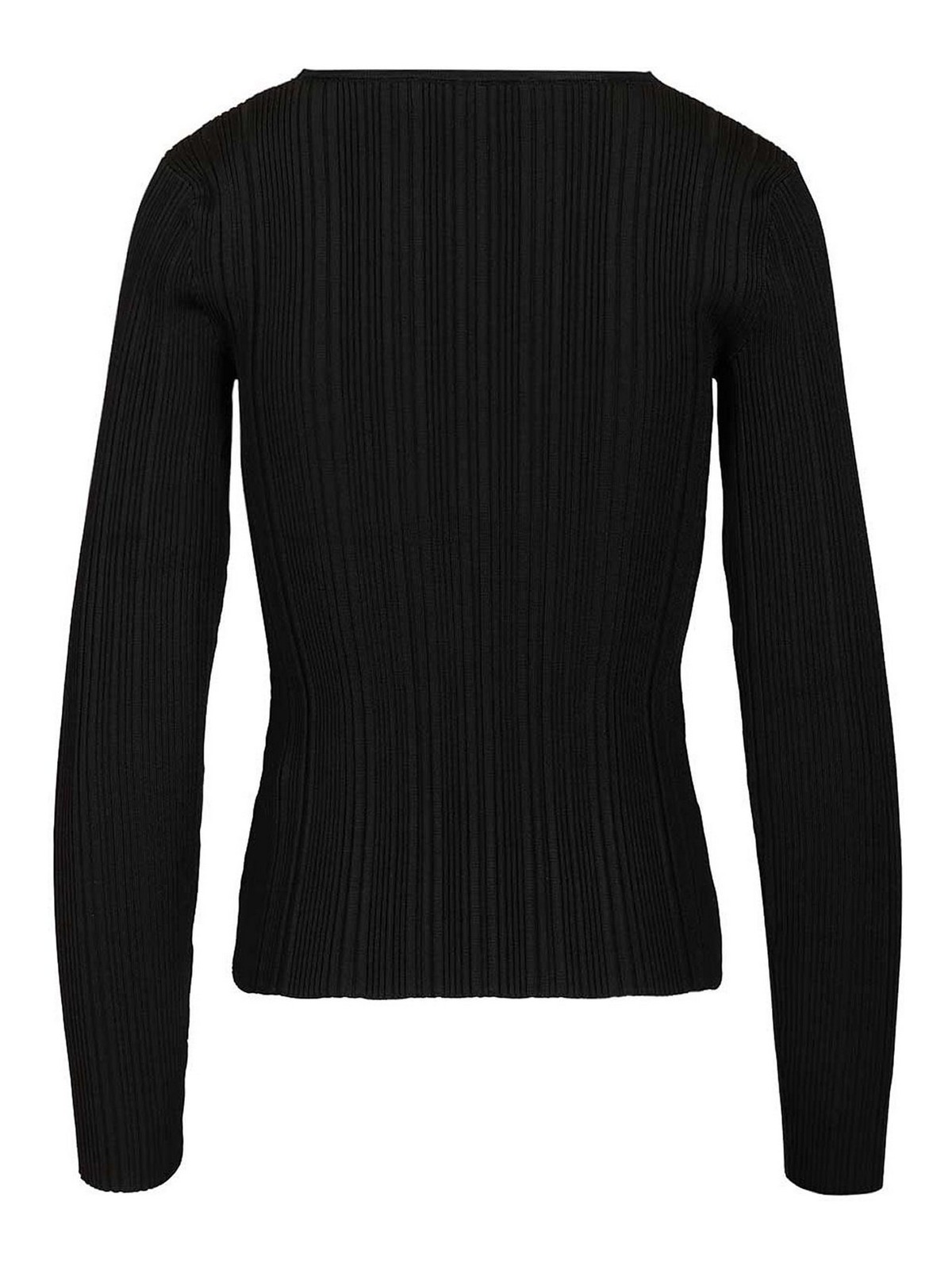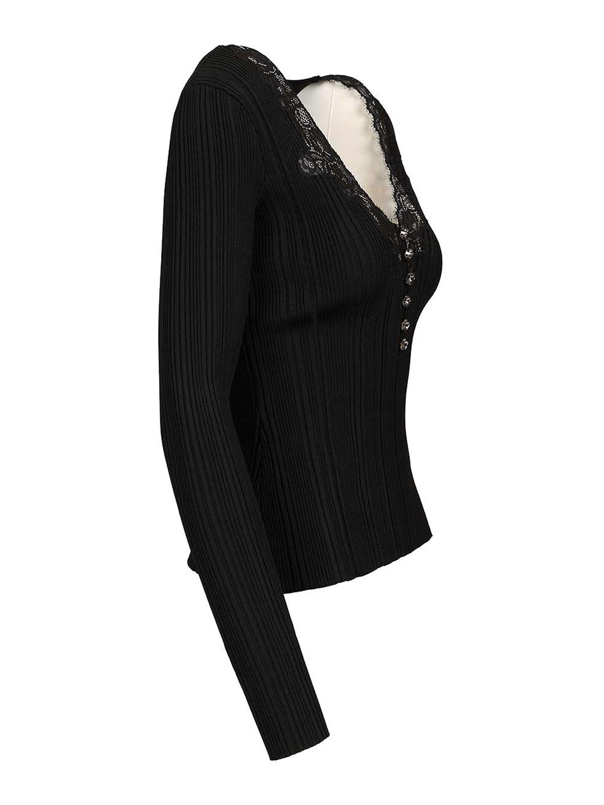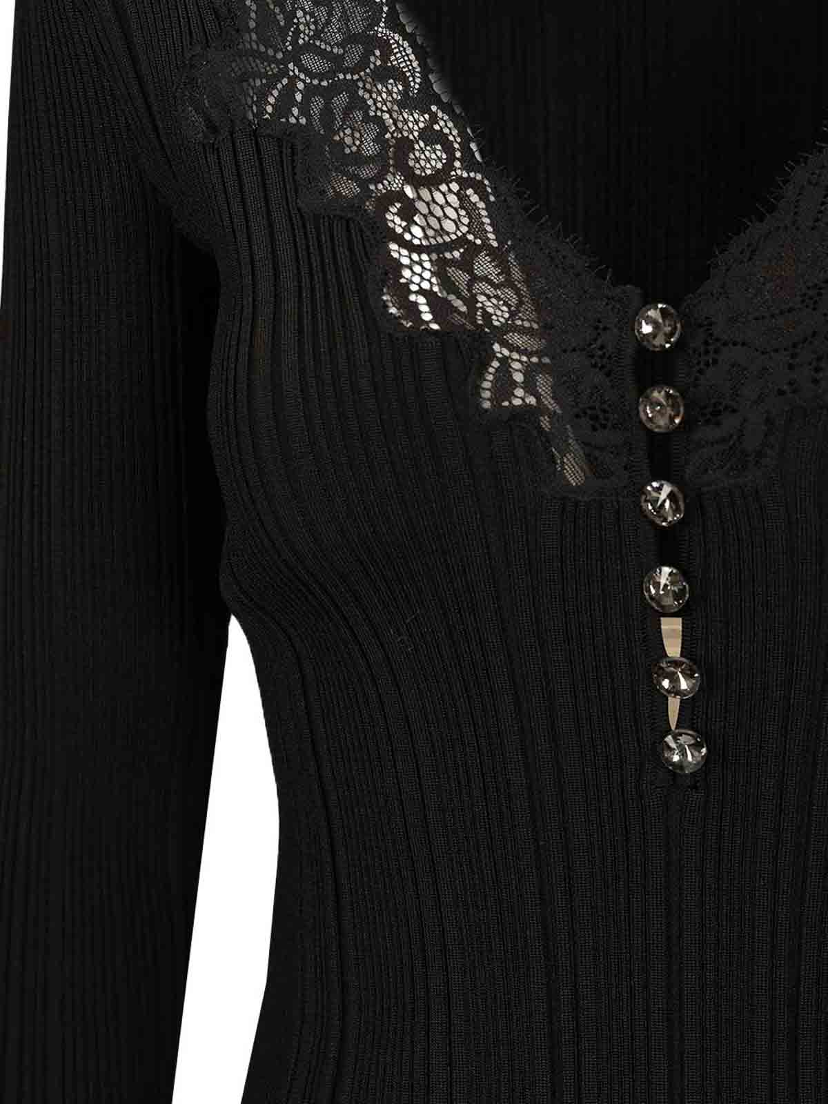 セルフポートレートリブニットトップ。ボタンとネックラインにレーストリム付き。
