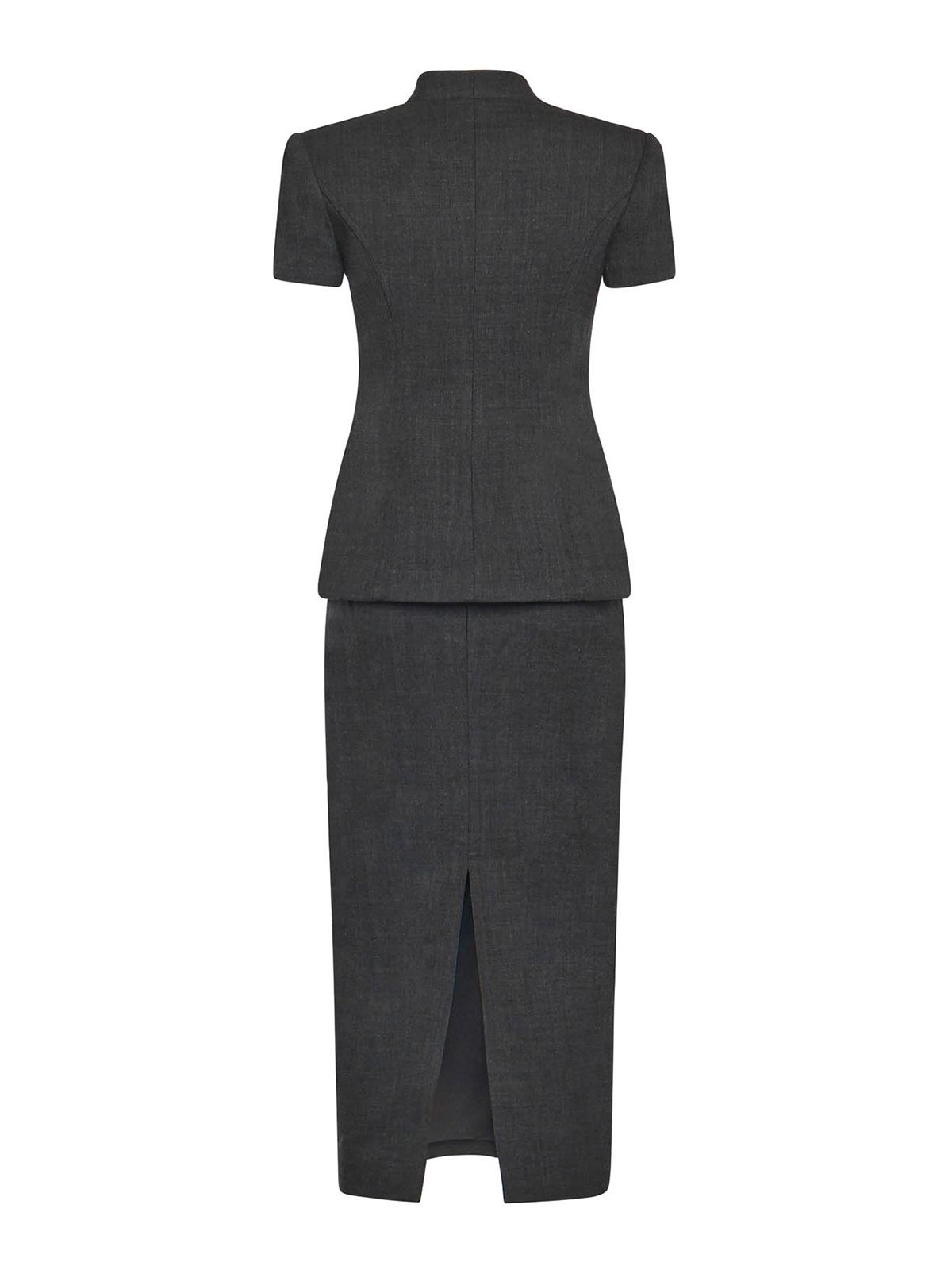 フロントボタン留め、半袖、取り外し可能なブローチ、スリムフィット、写真のサイズは6、色:グレー