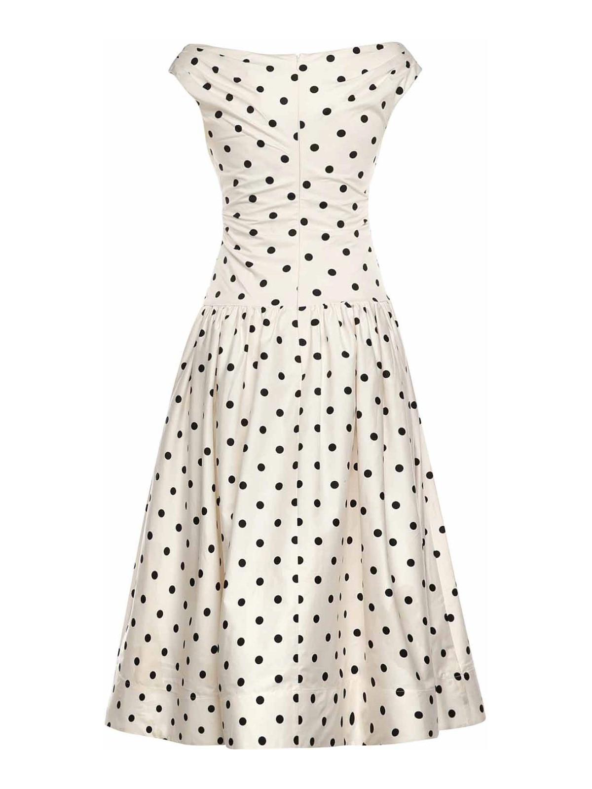 オフショルダー、スイートハートネックライン、隠しバックファスナー、ギャザーウエスト、表示サイズは6、色:クリーム