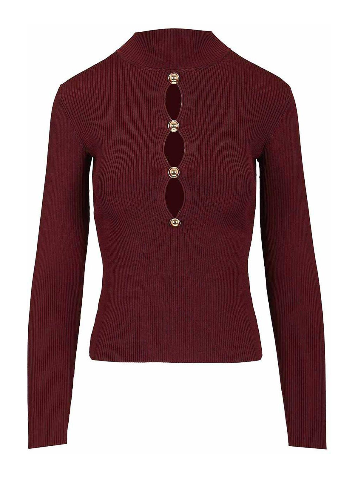 キーホール開口部とボタン付き長袖ニットトップ