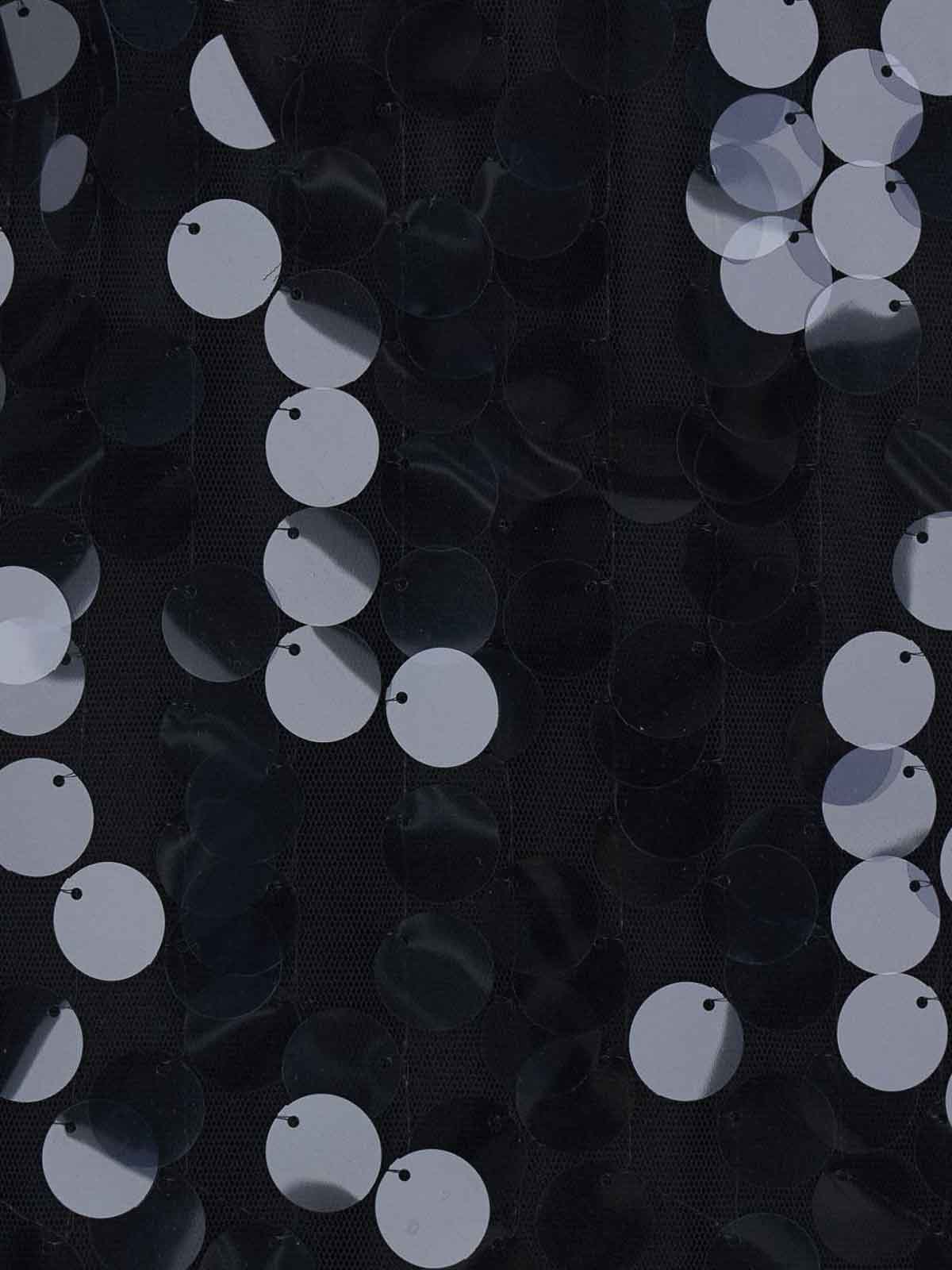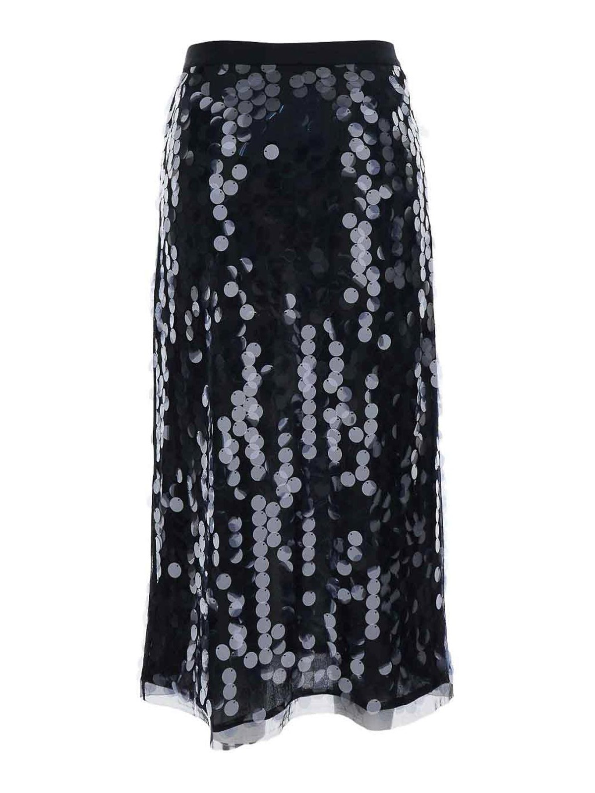 ブラックスパンコール装飾ミディ丈伸縮性ウエストバンドハイウエスト
