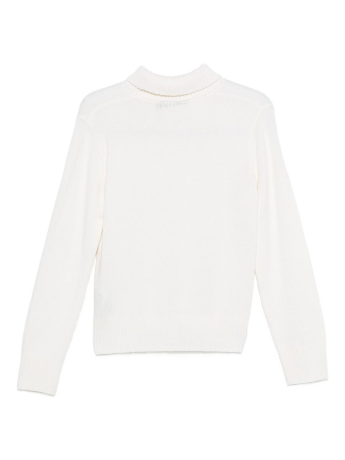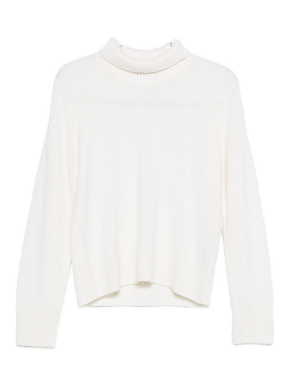 ホワイトタートルネック長袖リブ付きヘム