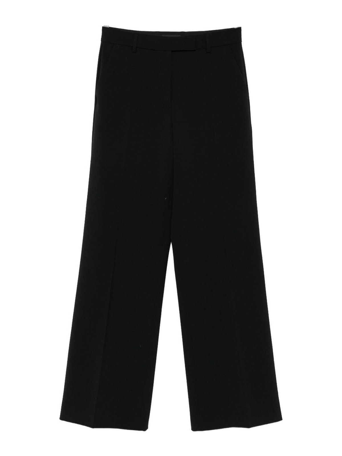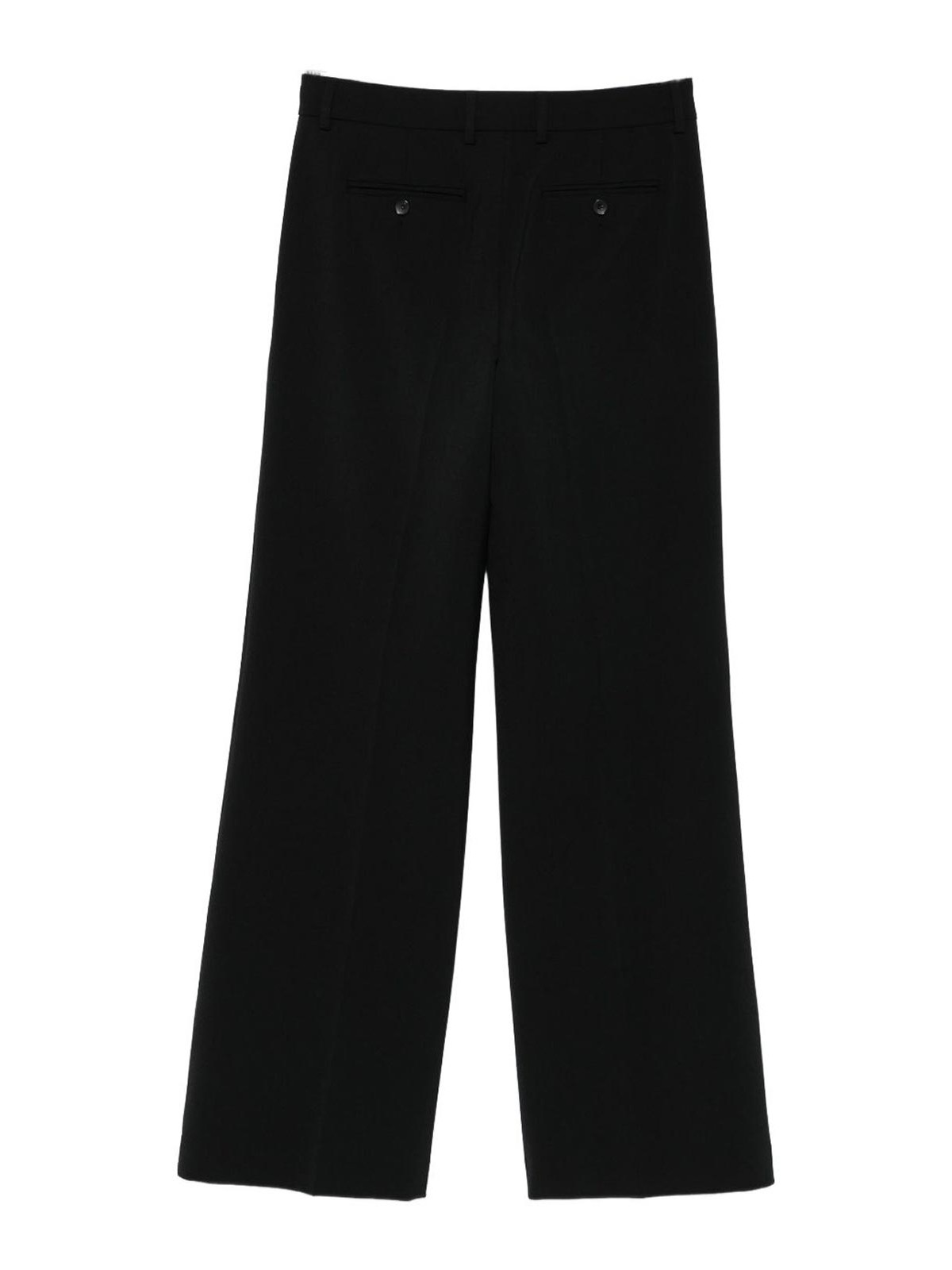 ブラックワイドレッグサイドポケット、ボタンフライバックポケット、ストレートヘム