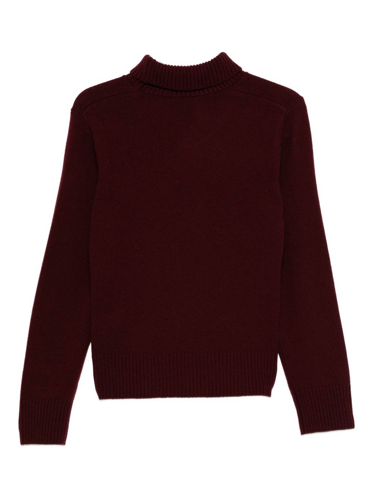 バーガンディータートルネックロングスリーブリブトリムストレートヘム