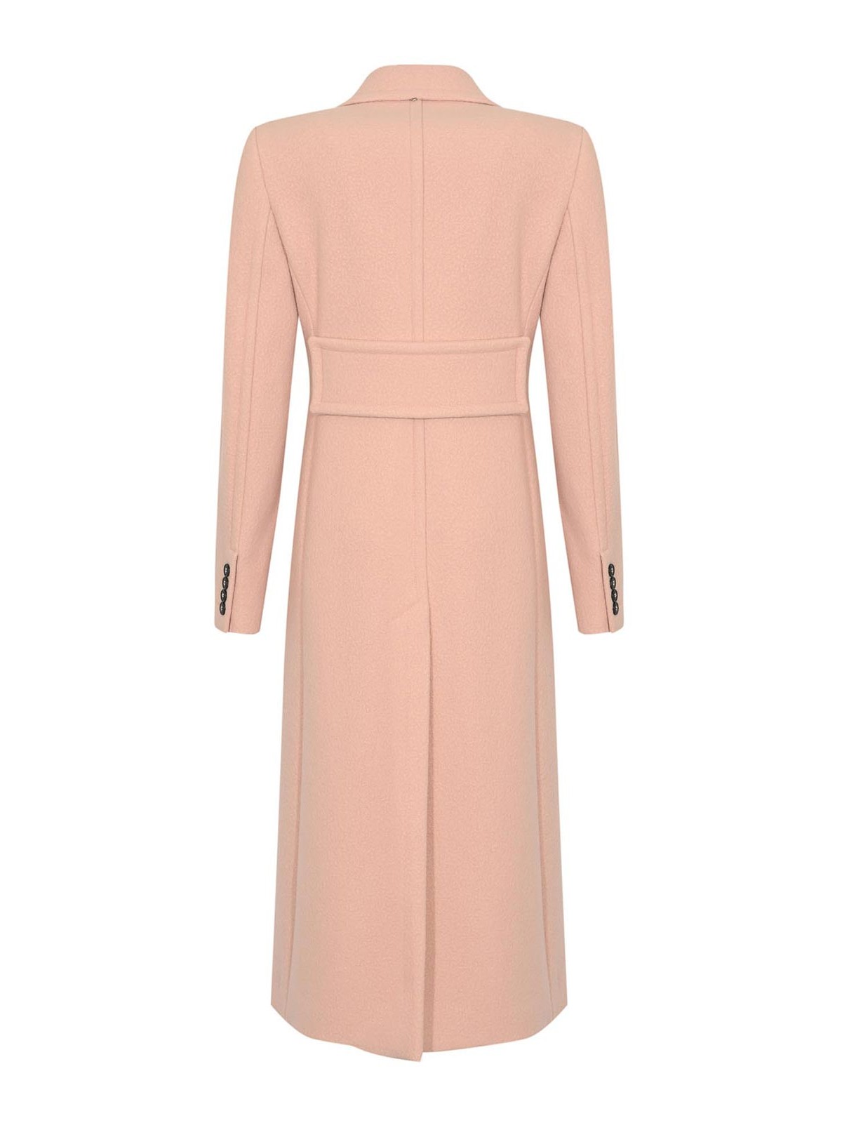 ロングダブルブレストコート:ピュアバージンウールダブルブレストロングスリーブ Vネックラペル付きダブルブレストボタンクロージャーサイドポケットバックマーチンゲールバックベント裏地ストレートフィット