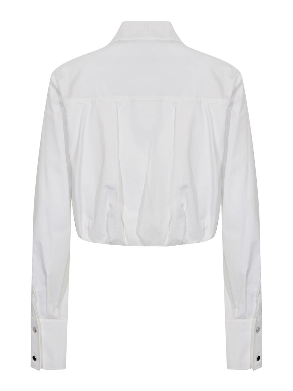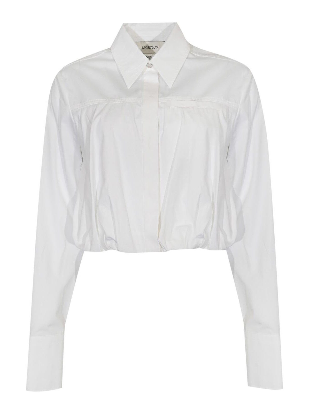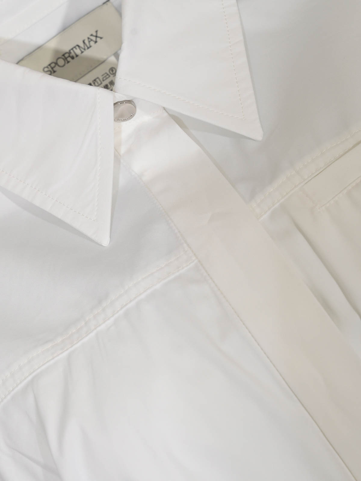 コットンシャツ:コットンポプリン長袖襟隠しフロントボタン留めボクシーフィットレギュラーフィット