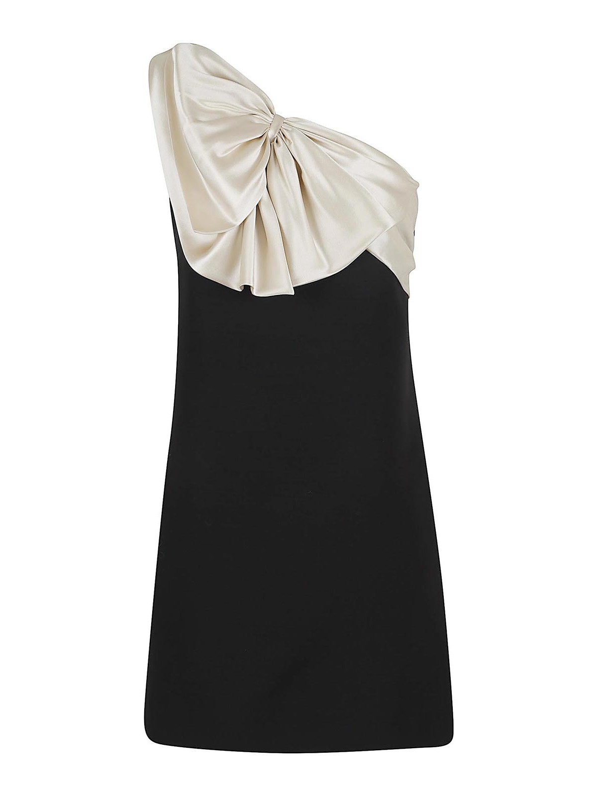 Valentino Garavaniのクレープサテンバンドとリボンが付いたワンショルダーのクレープクチュールドレス。サイドジッパーとフッククロージャー、裏地はピュアシルク。