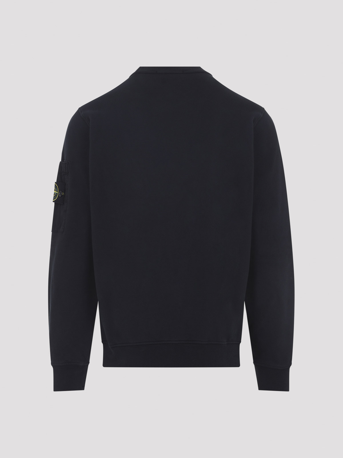 ストーンアイランドネイビーブルーコットンスウェットシャツ。ネイビーブルーコットン製のレギュラーフィットスウェットシャツ。クルーネック、ロングスリーブ、袖にロゴパッチが付いたアイコニックなポケット、リブ編みの裾が特徴です。