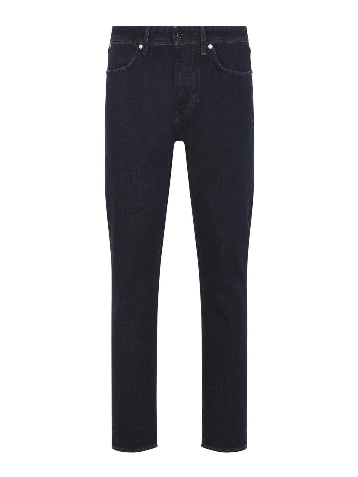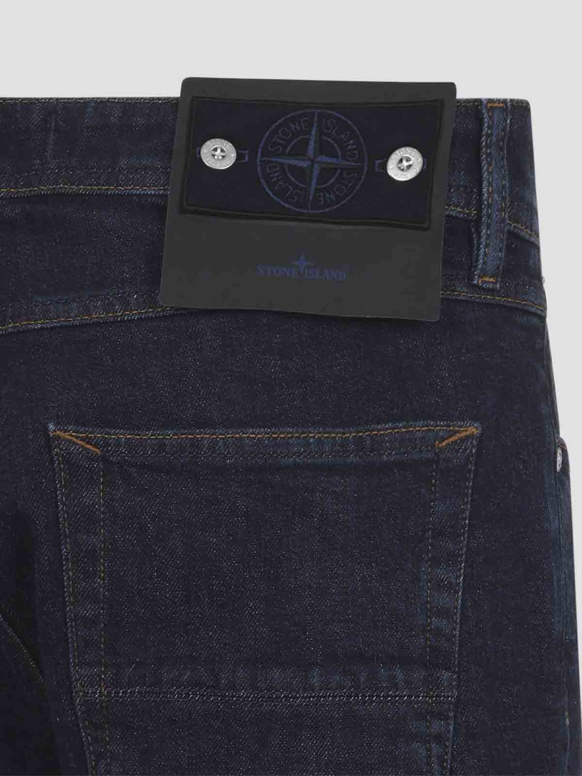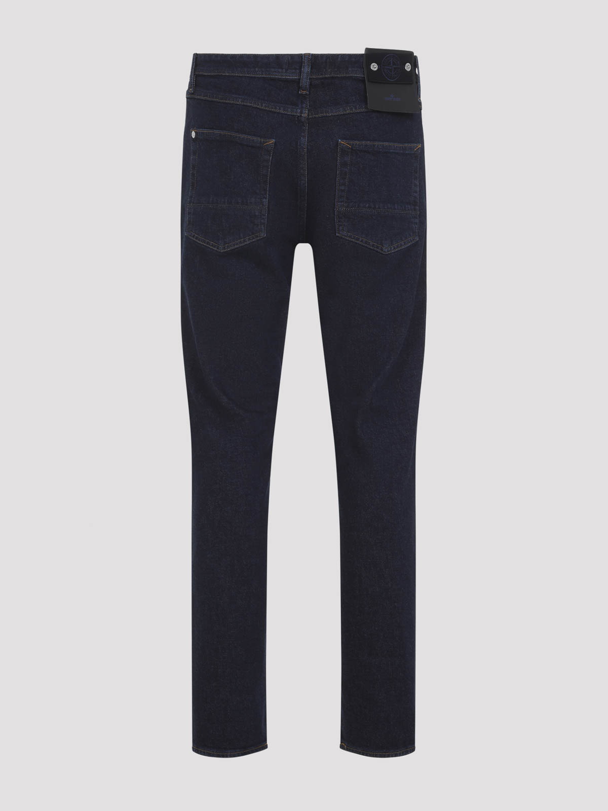 ストーンアイランドブルーのリンスコットントラウザー。コットンとエラステインのブレンドで作られています。フロント隠しファスナー、フロントボタン留め、ベルトループ、5ポケットデザイン、バックシグネチャーパッチロゴ、ストレートヘム。