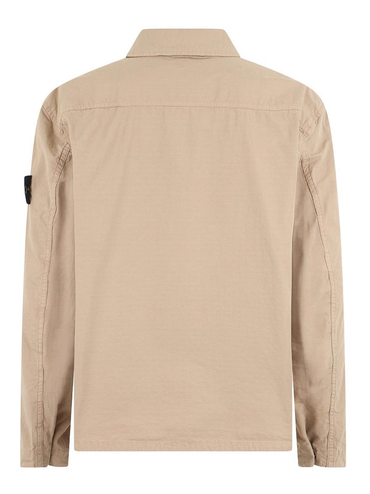 ストーンアイランドのジッパーとポケット付きベージュコットンシャツ