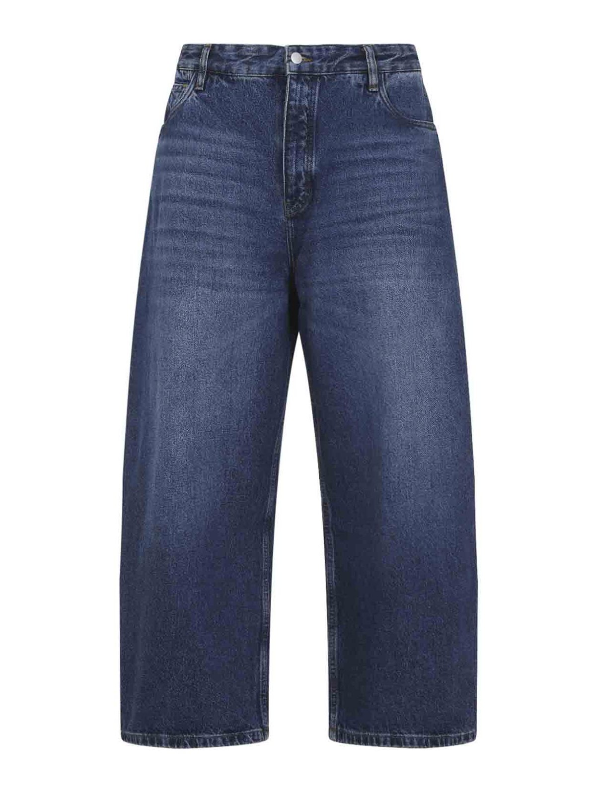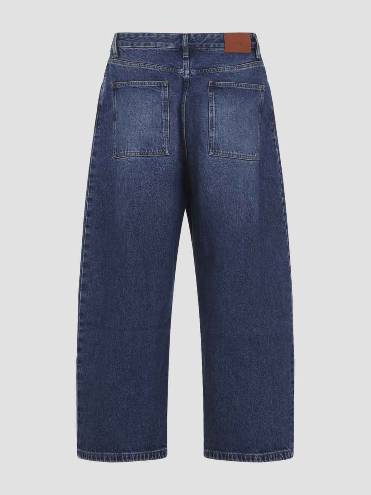 スタジオニコルソンパオロブルーコットンジーンズ。ウォッシュドブルーコットンデニム製の5ポケットジーンズ。ミッドライズウエスト、ベルトループ、ボタンとジップフライファスナー、背面にブランドレザーラベル、誇張されたバルーン型の脚が特徴です。