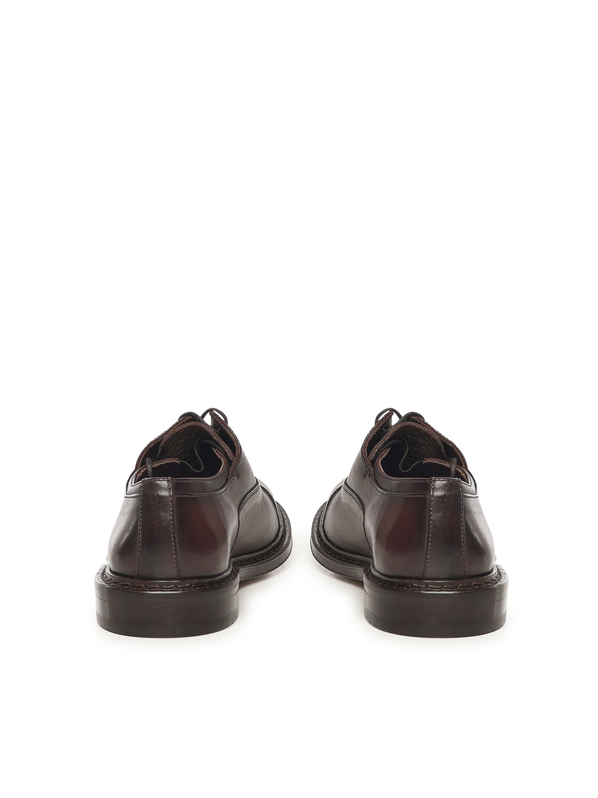 レザーとラウンドトゥのデザイナーカラーチョコレート