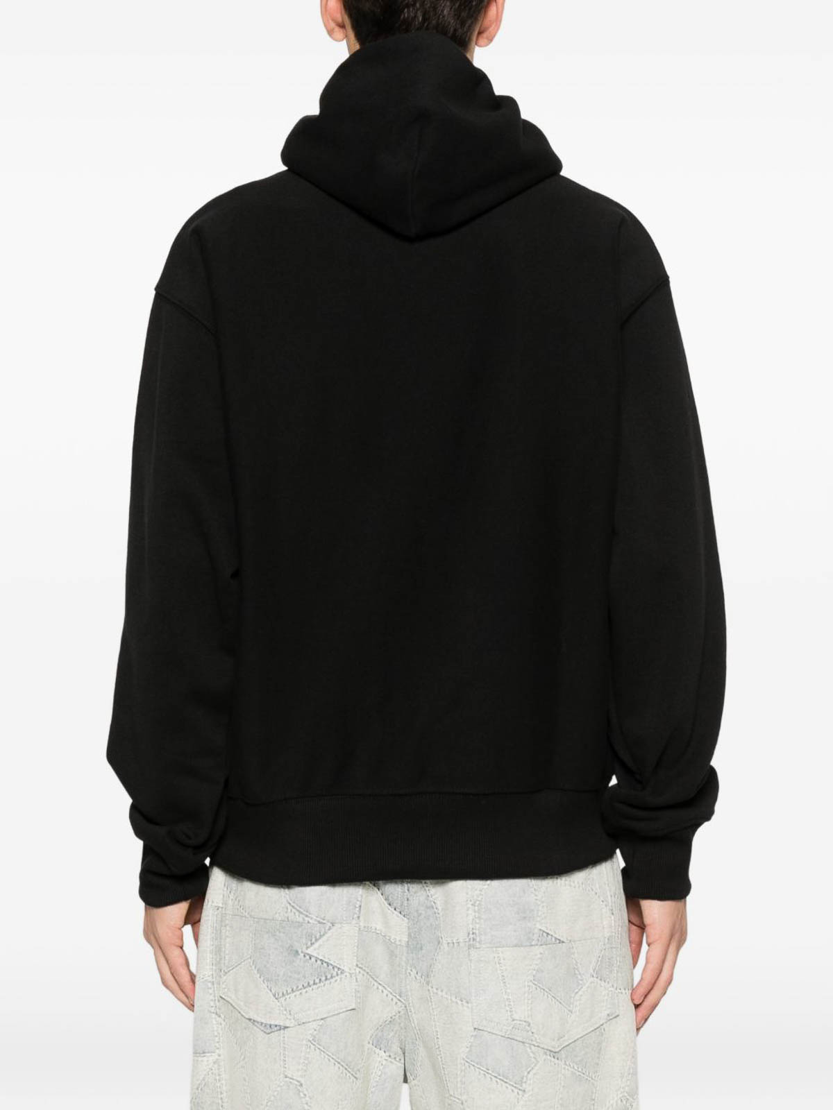 ブラックロゴモチーフドローストリングフードリブ付きヘムリブ編みカフス