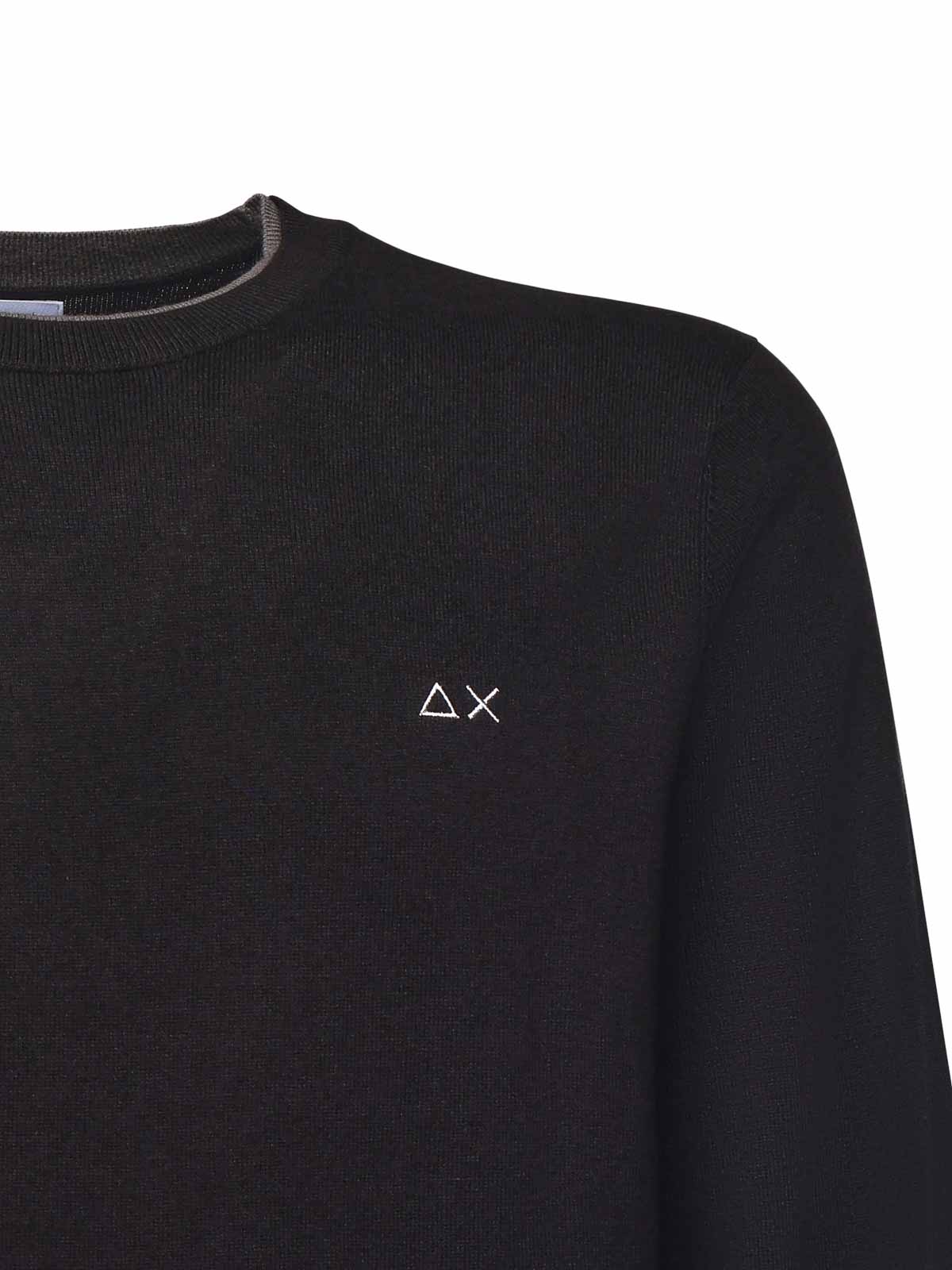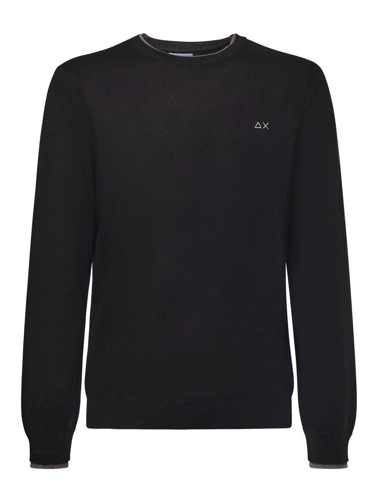 ウールとコットンの糸製、クルーネック、リブ仕上げ、長袖、ロゴ刺繍、襟と袖口のコントラストトリム、写真のサイズはM、色:黒