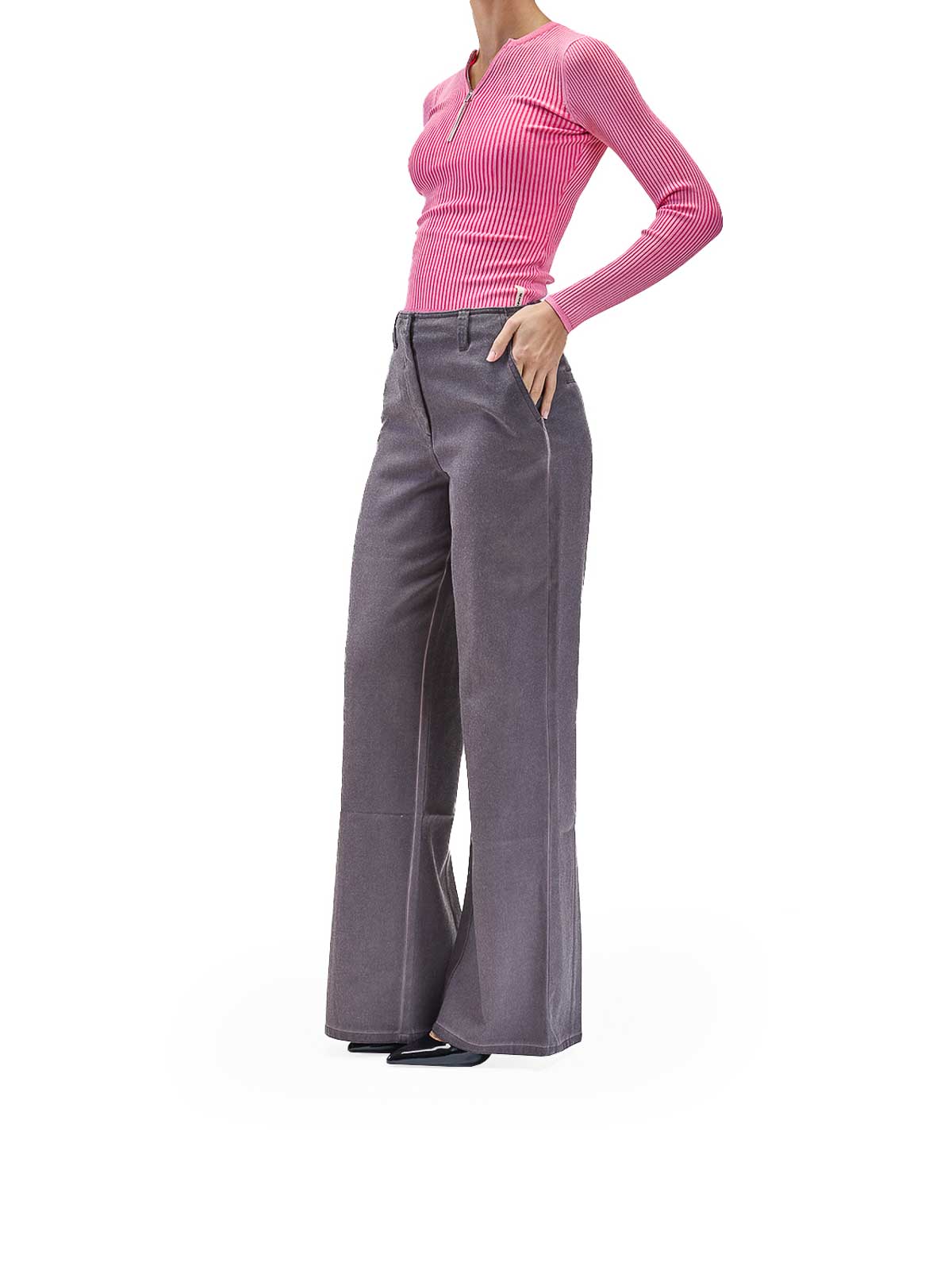 パープルのルーズフィットパンツ。Sunnei 軽量ウールのワイドレッグパンツ。背中中央に通気孔があり、フェードステッチが施されています。ワイドレッグ、センターバックベンツ、コントラストステッチ、サイドポケット2つ、バックウェルトポケット2つ、バックにロゴループ付き。カラー:パープル。100% ウール。ルーズフィット。イタリア製。