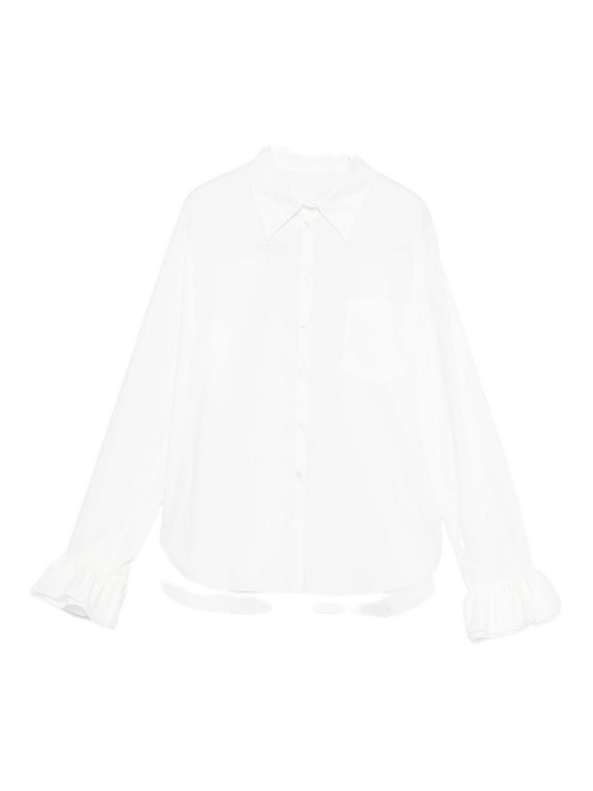 ホワイトブレンドボタンクラシックカラーロングスリーブフリルカフス