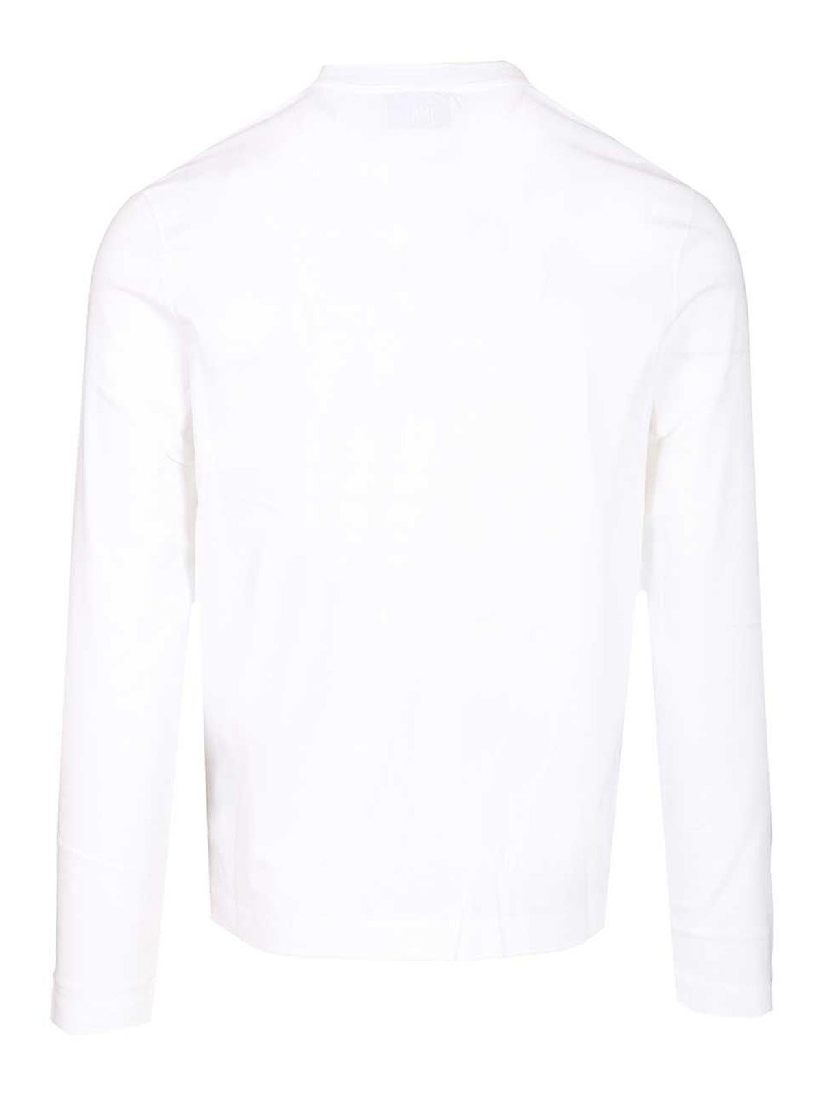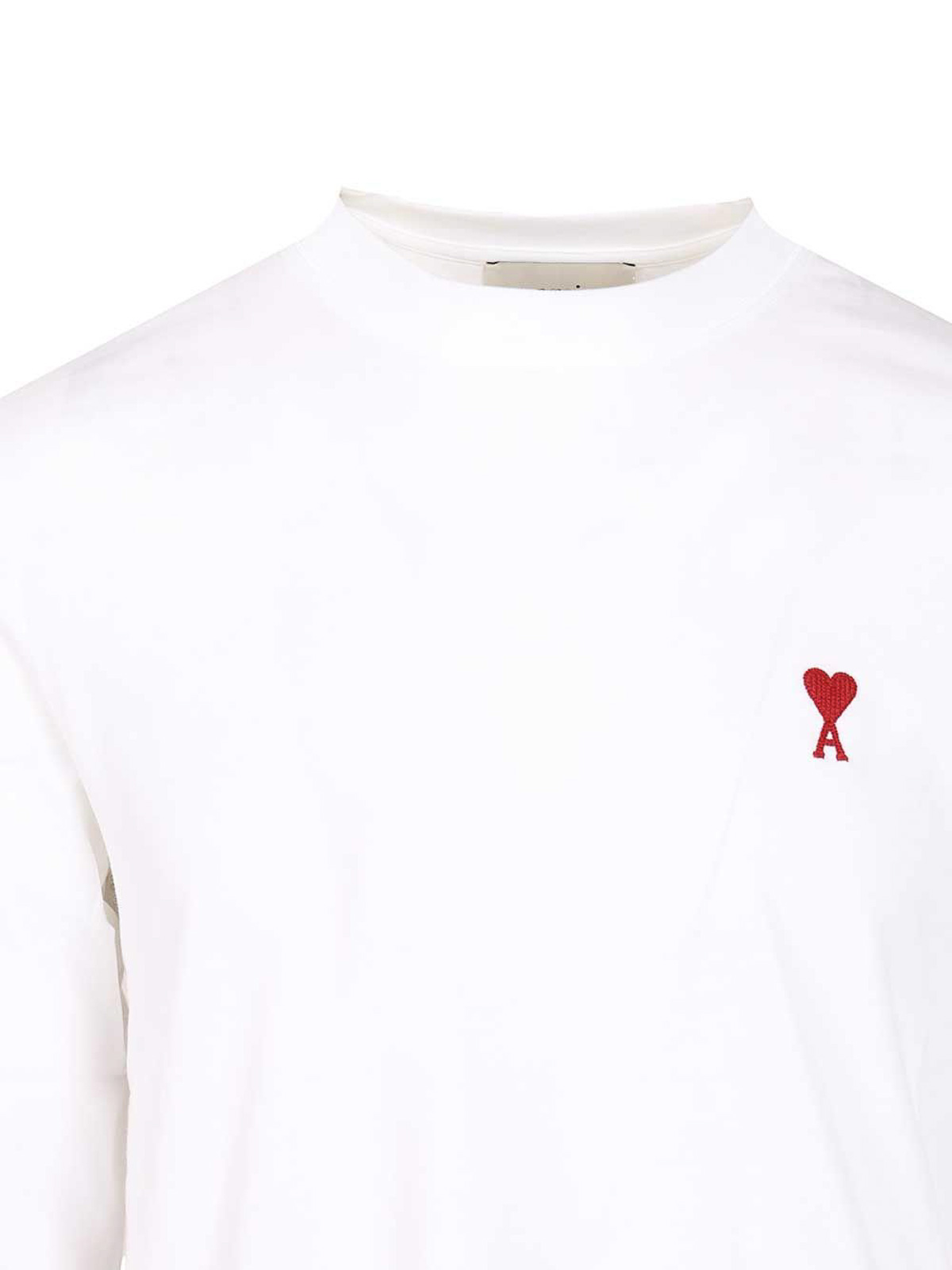 Ami de coeur 長袖オーガニックコットンジャージー T シャツ。胸元にはアミ・ド・クールの刺繍、後ろのネックラインの下にはトーン・オン・トーンのアミの刺繍が施されています。