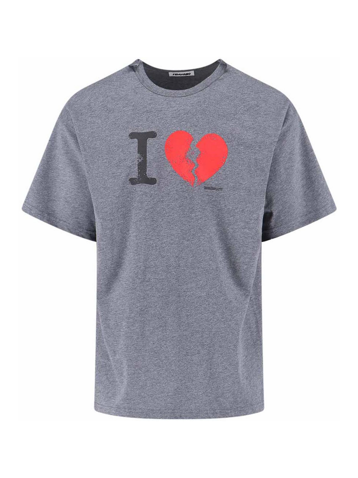 アイサファー・マリアーノTシャツ、グレーコットン、クルーネック、ドロップショルダー、フロントロゴプリント、ストレートヘム。