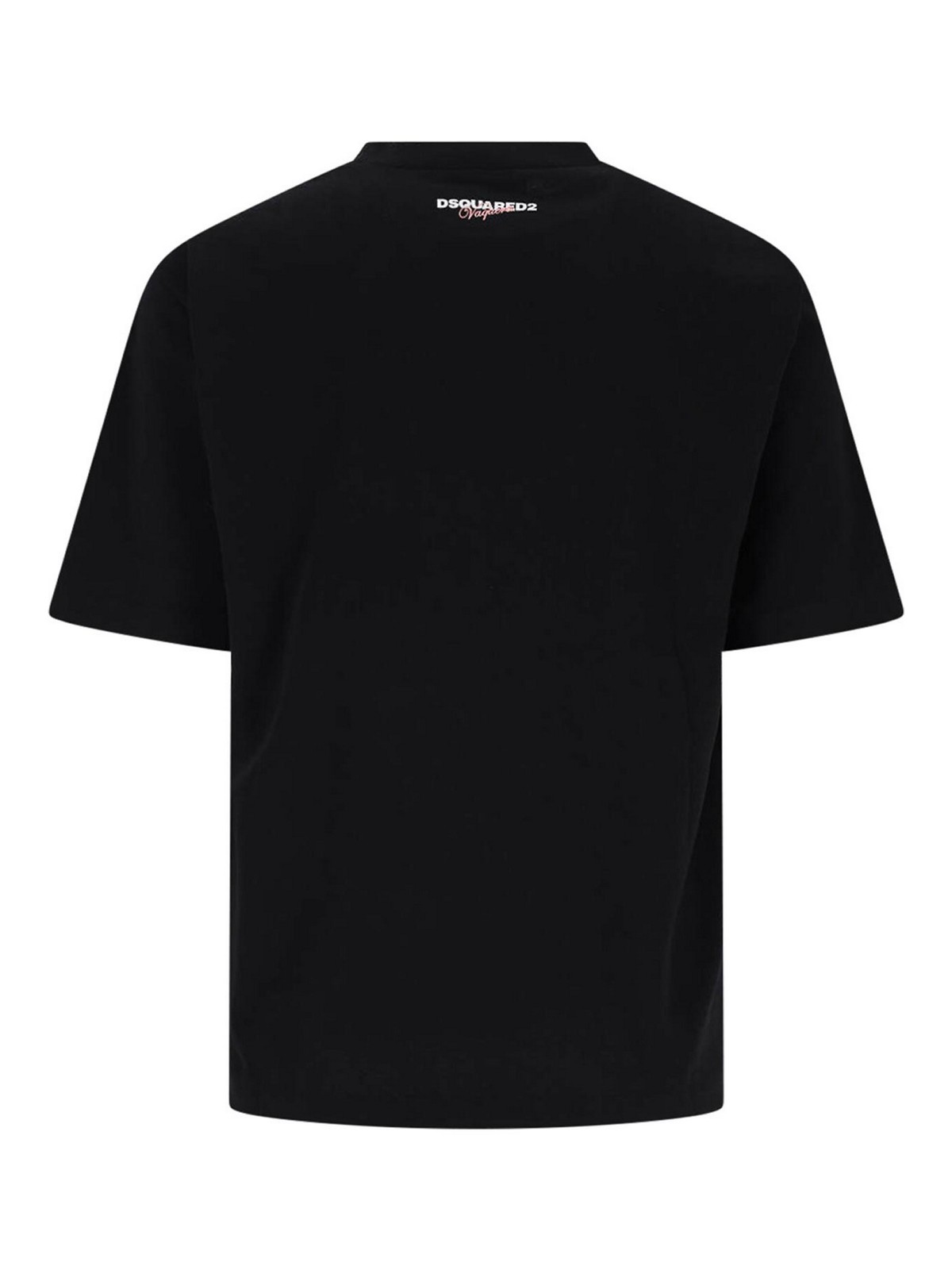 Dsquared x vaquera ニューヨークドールTシャツ、ブラックコットン、クルーネック、半袖、前面にマルチカラーのロゴプリント、背面にロゴディテール、ストレートヘム。