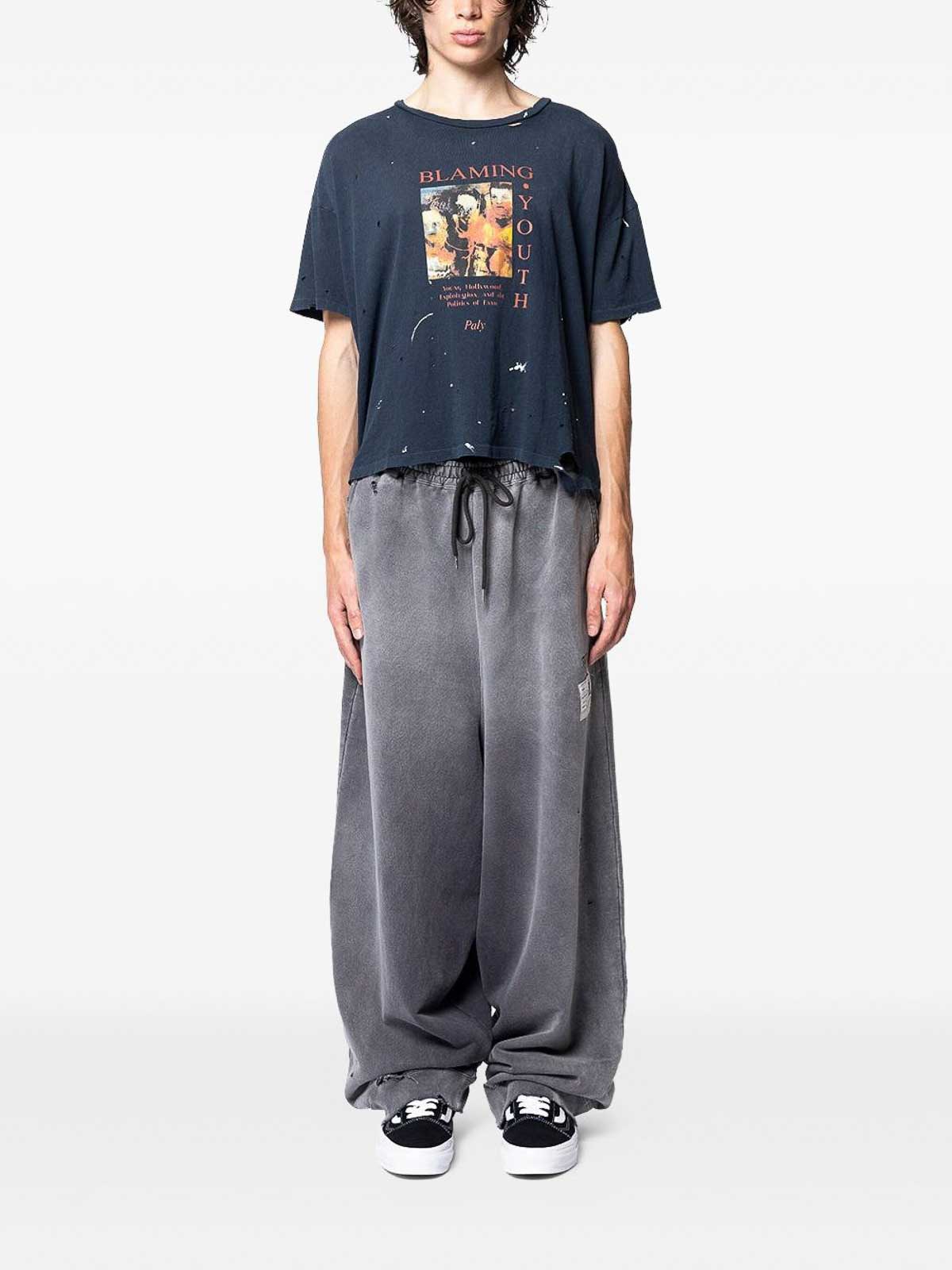 Origin United States of Americaは、黒のアンティーク調加工グラフィックプリントのローカットヘムクルーネック半袖が特徴です
