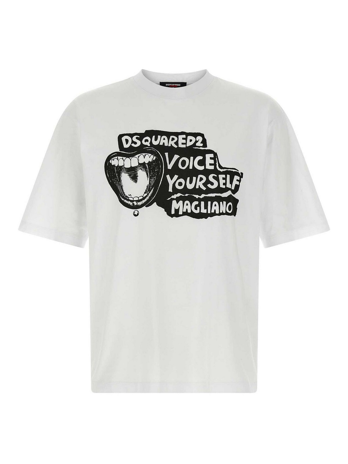 コットンジャージーのMagliano x dsquared2カプセルTシャツ、フロントプリント、クルーネック、ドロップショルダー付きショートスリーブ。