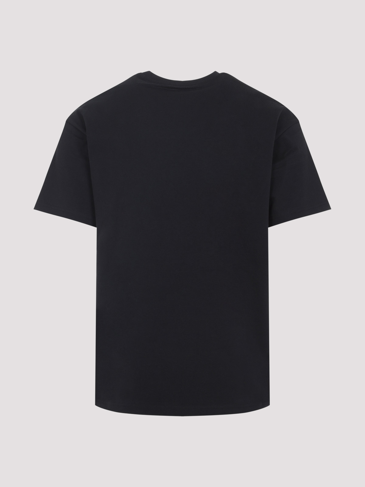 ジバンシィの黒と白のコットンTシャツ。ピュアブラックのコットンTシャツ、ラウンドネック、前面に白い色調のレタリングロゴ、半袖、色調ステッチ、ストレートヘム。