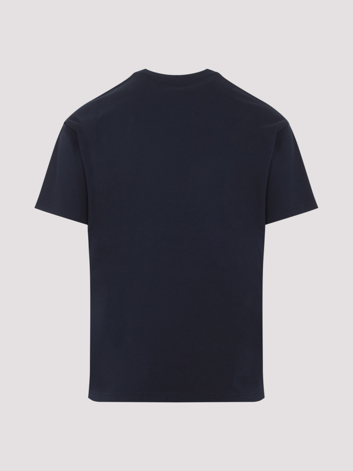 ジバンシィダークネイビーブルーコットンTシャツ。ピュアダークネイビーブルーコットンTシャツ、ラウンドネック、胸元にトーナルパッチロゴ、ショートスリーブ、ストレートヘム、トーナルステッチ。