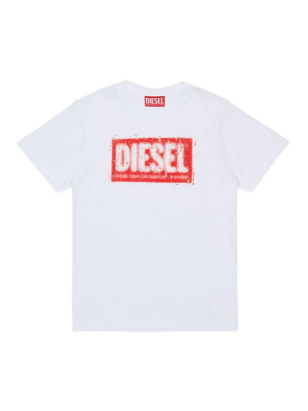 ロゴ入りTシャツ、ロゴ入りホワイトプリント、半袖、クルーネック