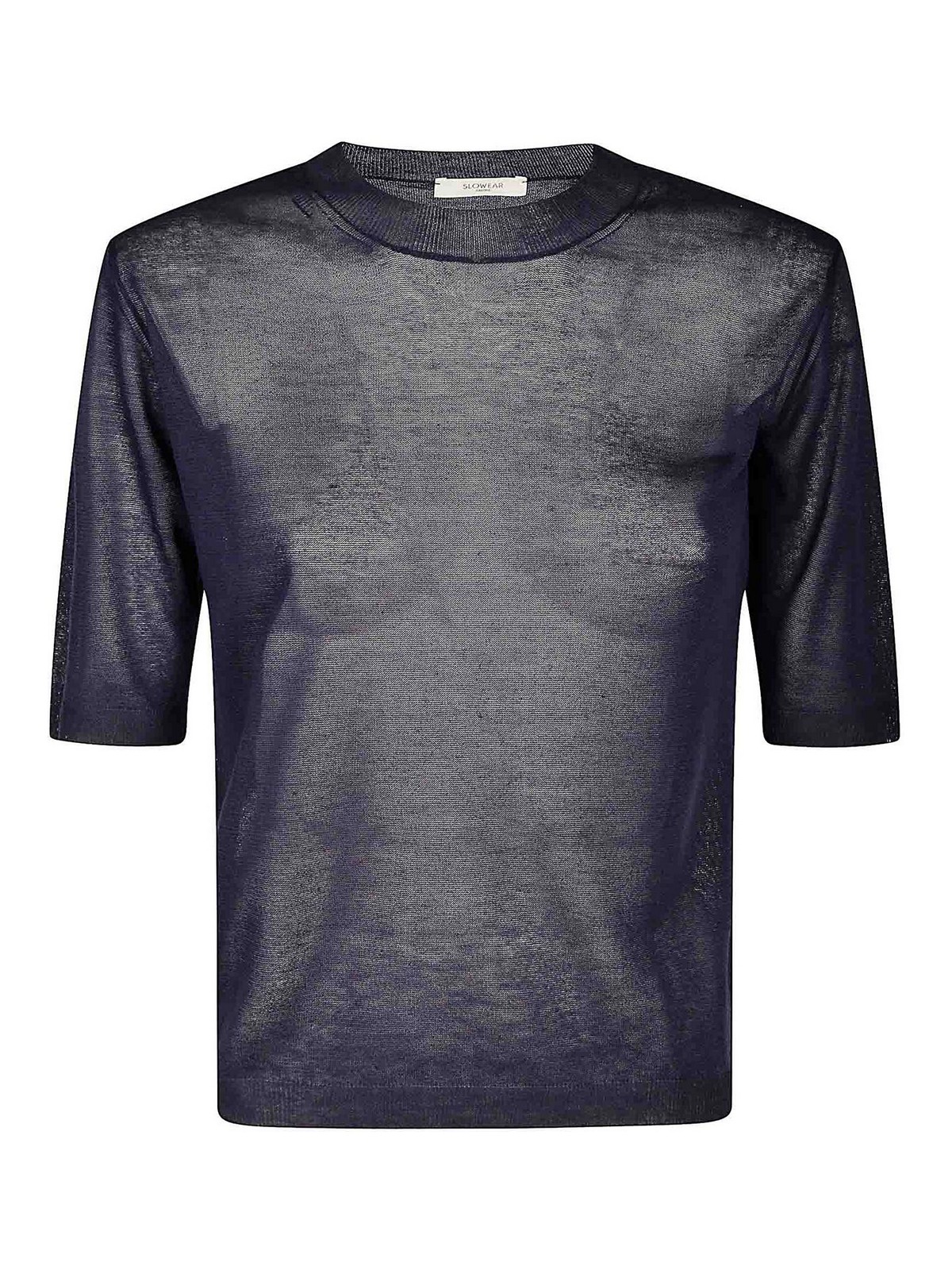 Zanone Tシャツは軽量で透け感のある生地の深いインディゴカラーで、リラックスフィットと丸みを帯びたネックラインが特徴で、フレッシュでモダンな夏の装いにぴったりです。