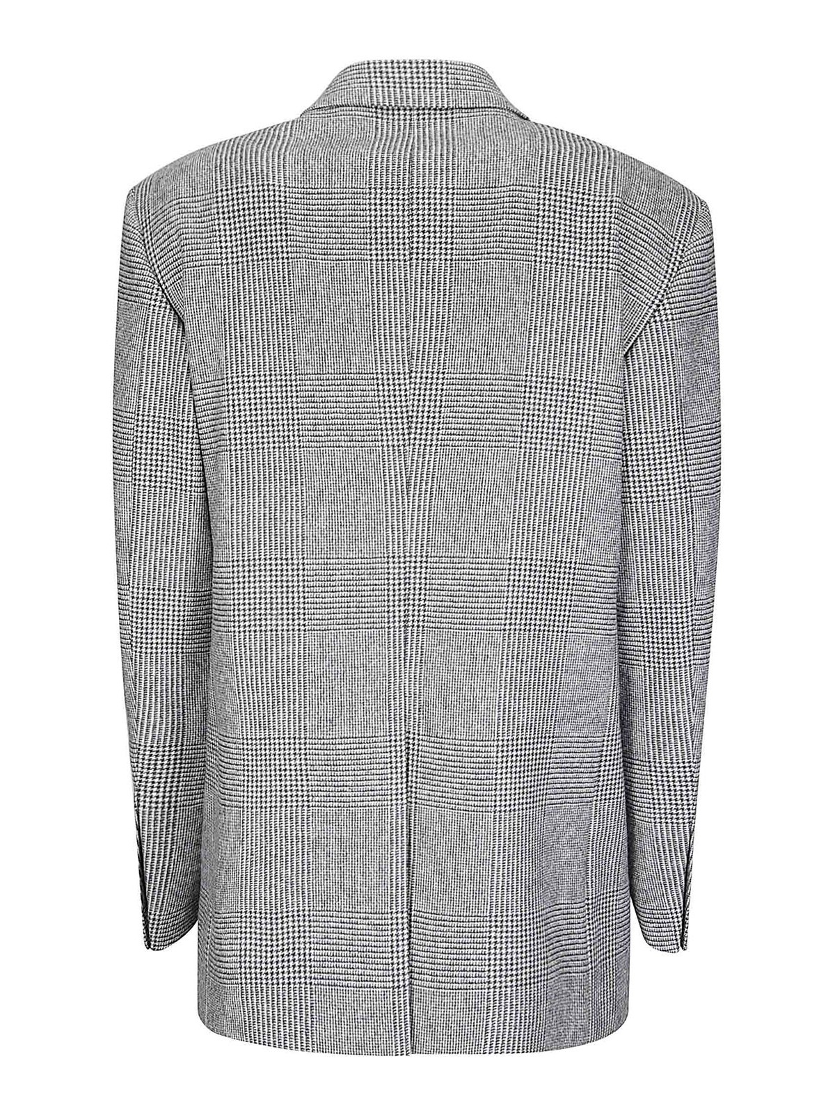エレガントなウールジャケット、ダブルブレストクロージャー、コントラストカラーのボタン、フロントポケット、バックベント。