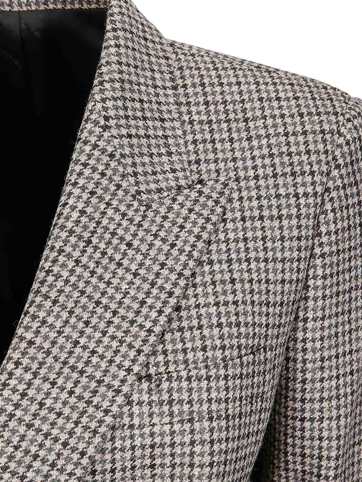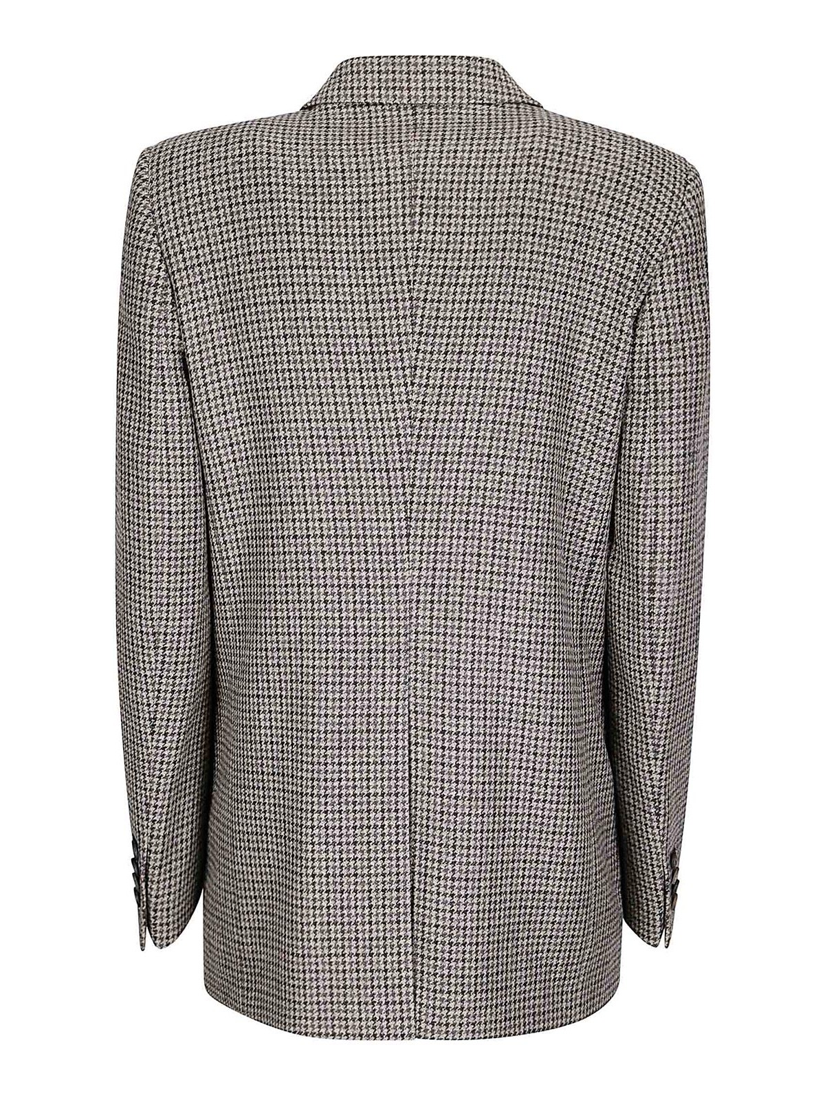 エレガントなウールジャケット、ダブルブレストクロージャー、コントラストカラーのボタン、フロントポケット、バックベント。