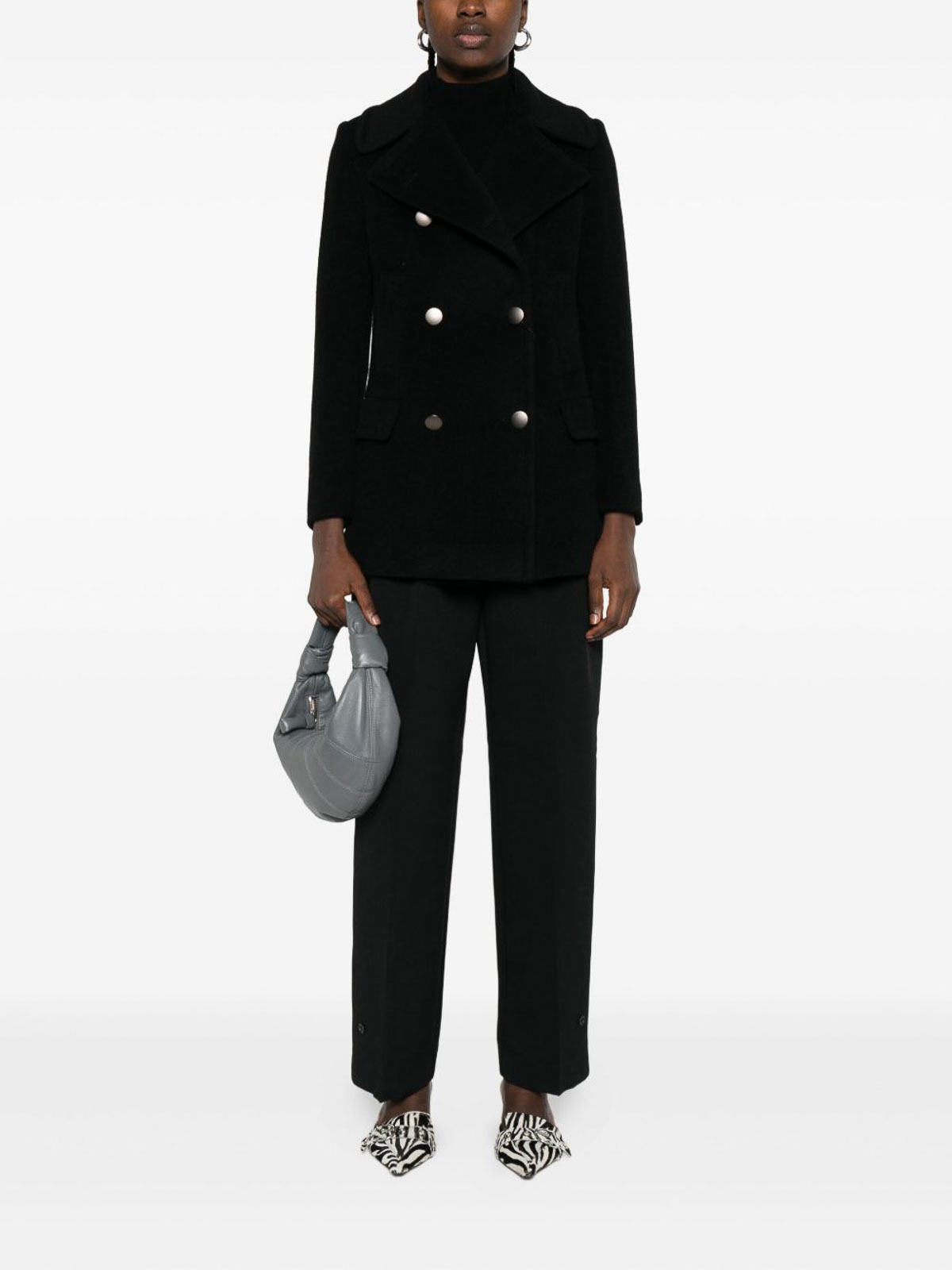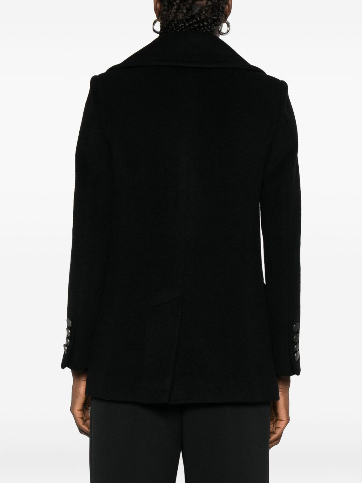 ブラックダブルブレストファスナーピークラペルフロントポケット2個ロングスリーブウール