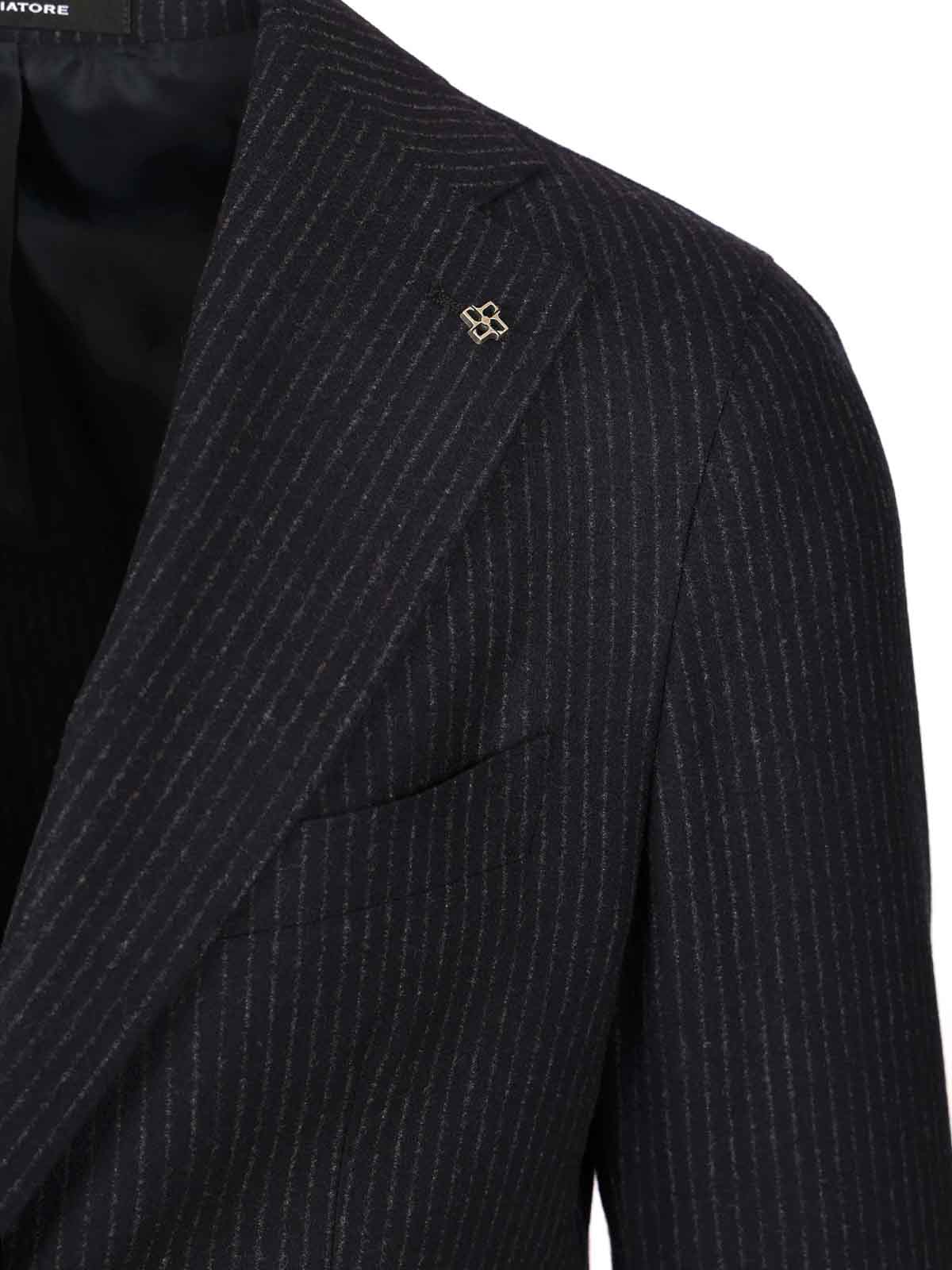 フラップポケットとダブルバックベント付きベスビオピンストライプシングルブレストスーツ